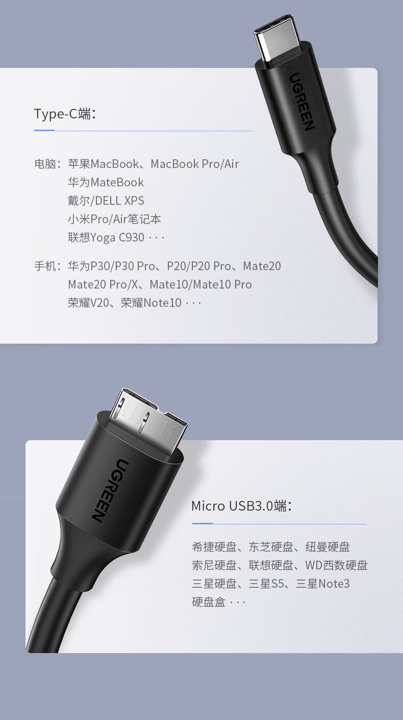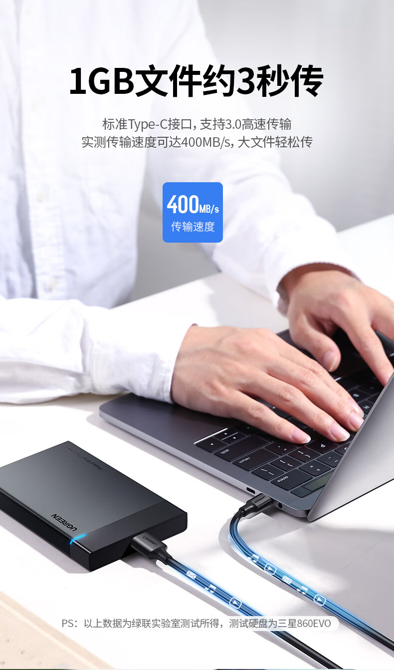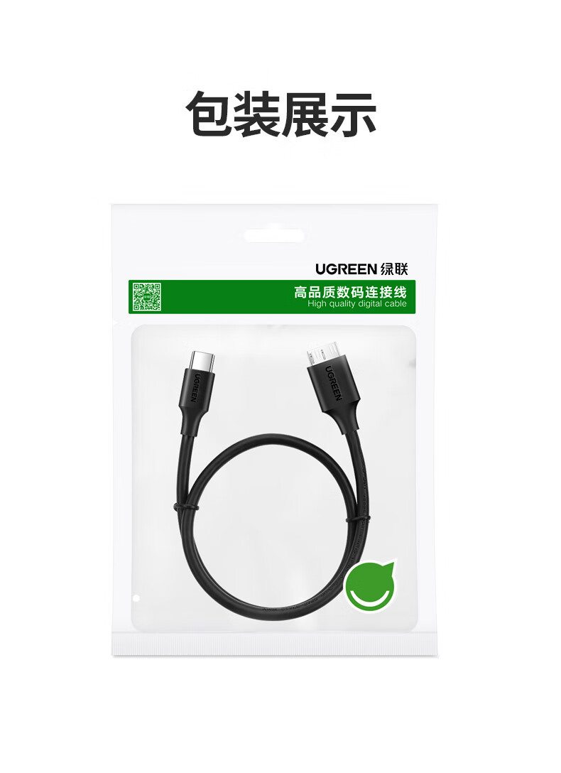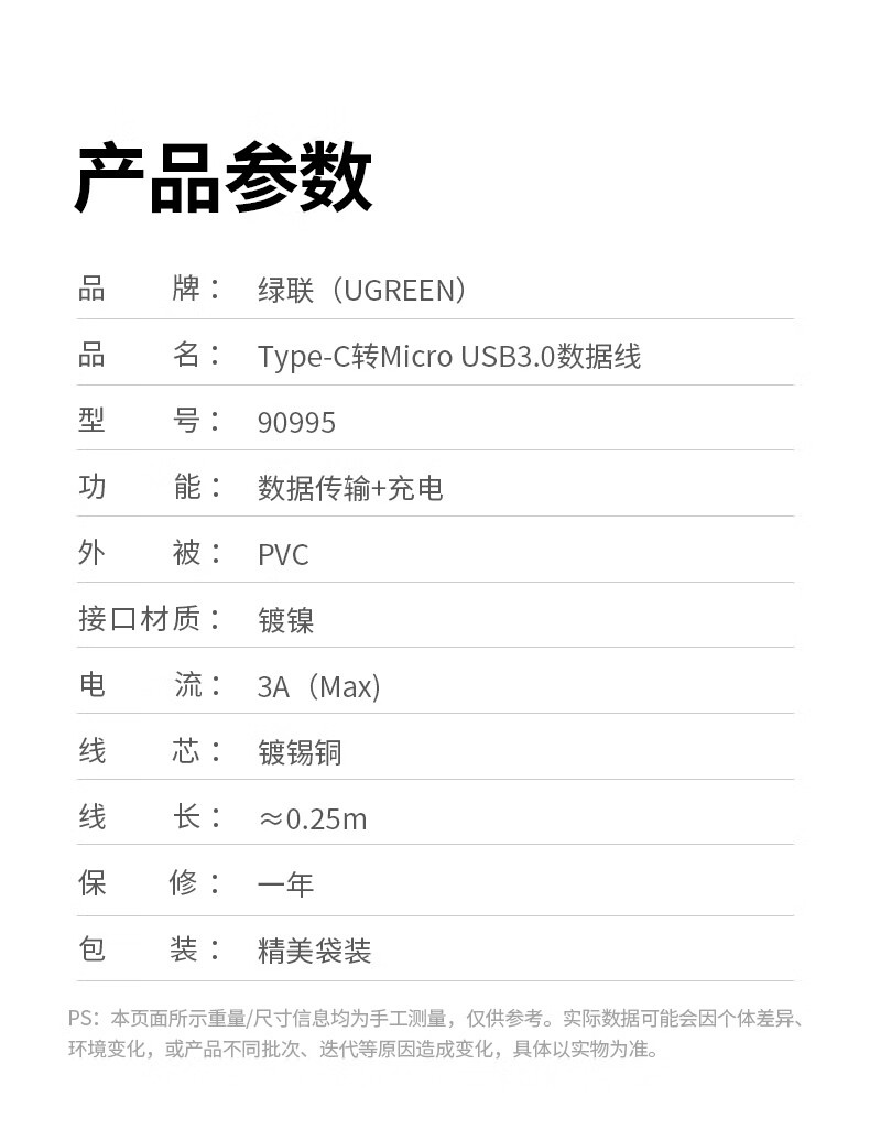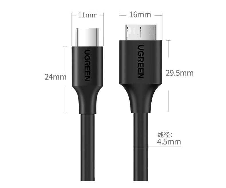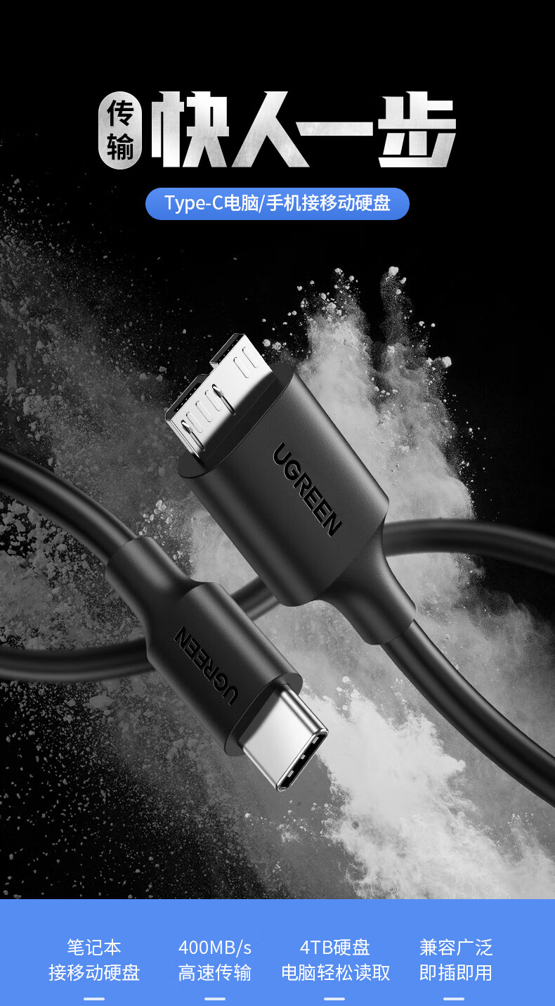 绿联(UGREEN) 90995 0.25米 硬盘数据连接线 黑色(单位:根)