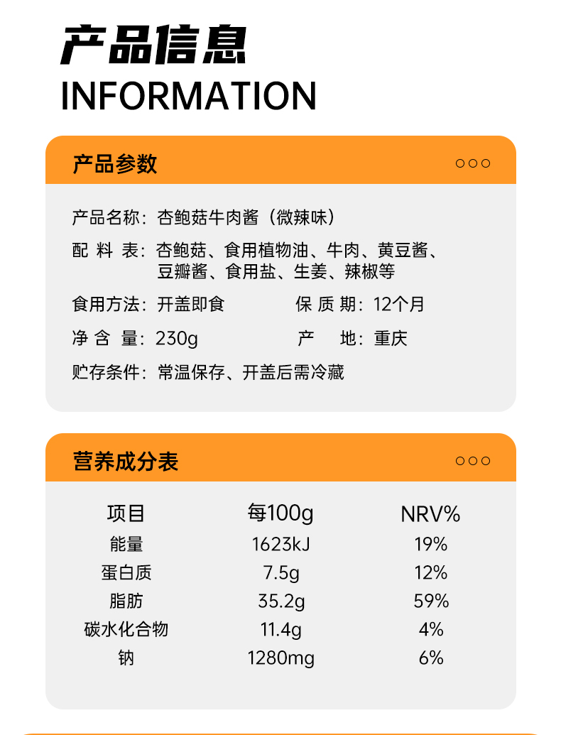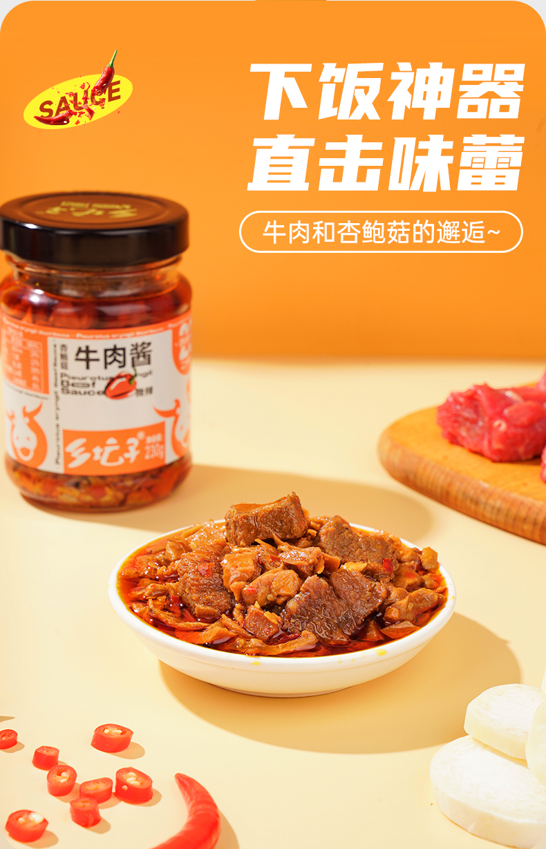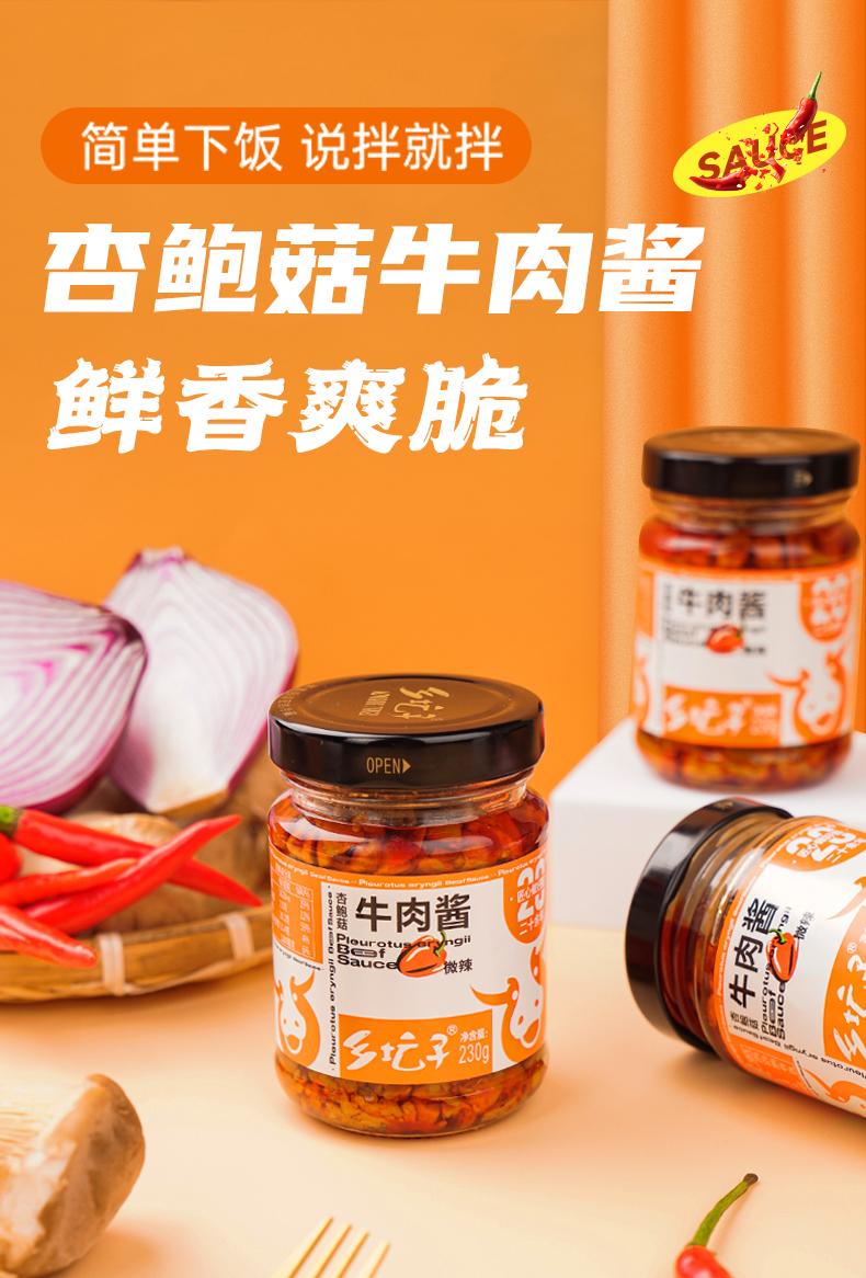 乡坛子 杏鲍菇牛肉酱微辣味 220g*2 大块牛肉劲道多汁 混色(单位:组)