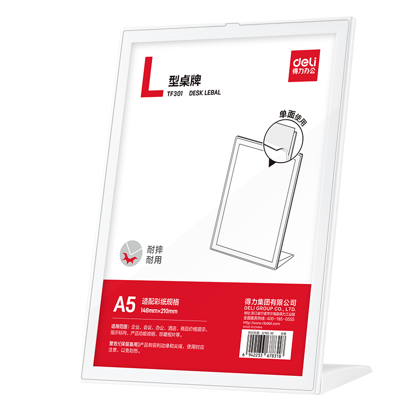 得力(deli) TF301 148*210 桌牌展示牌展示架 白色(单位:个)