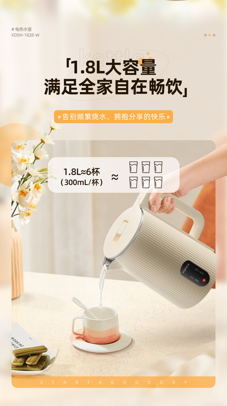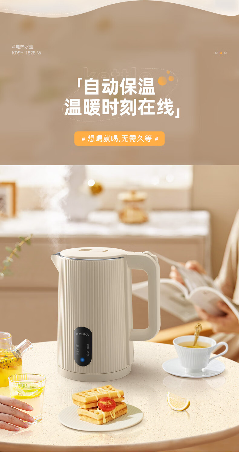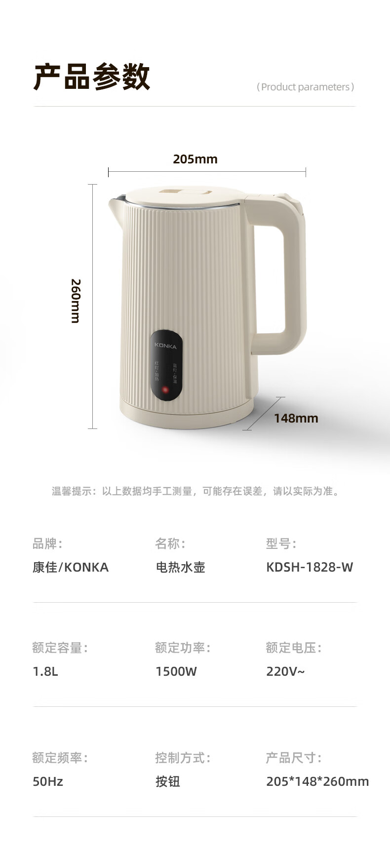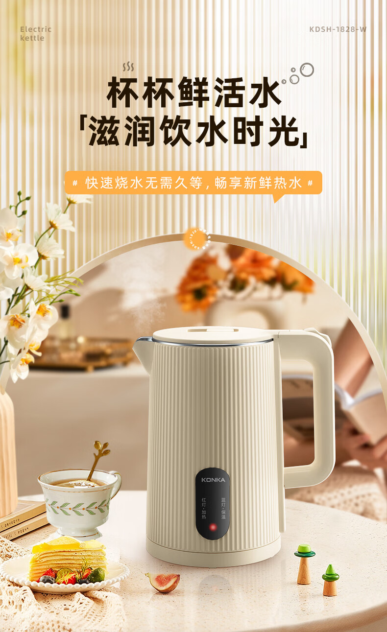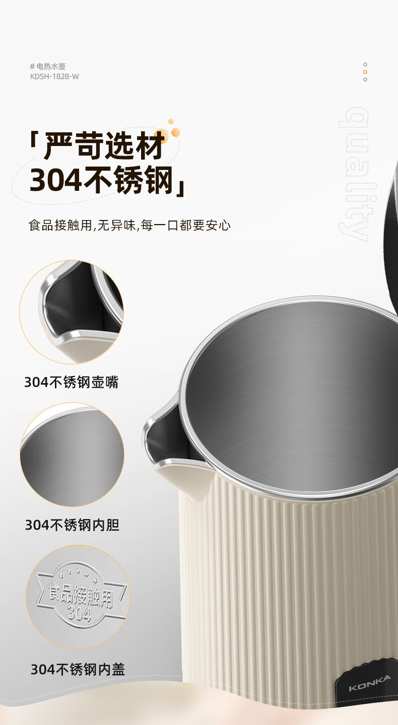 康佳(KONKA) KDSH-1828-W 1.8L 电热水壶 米色(单位:个)
