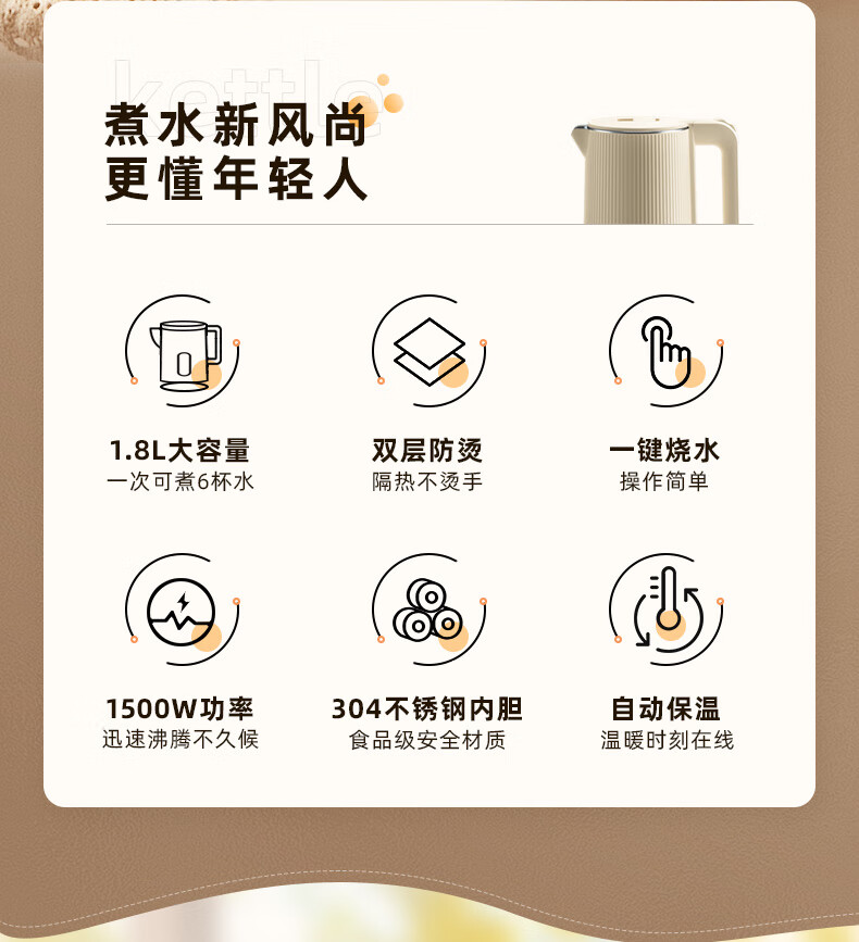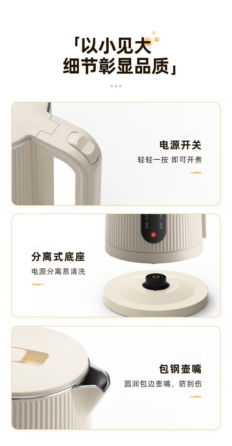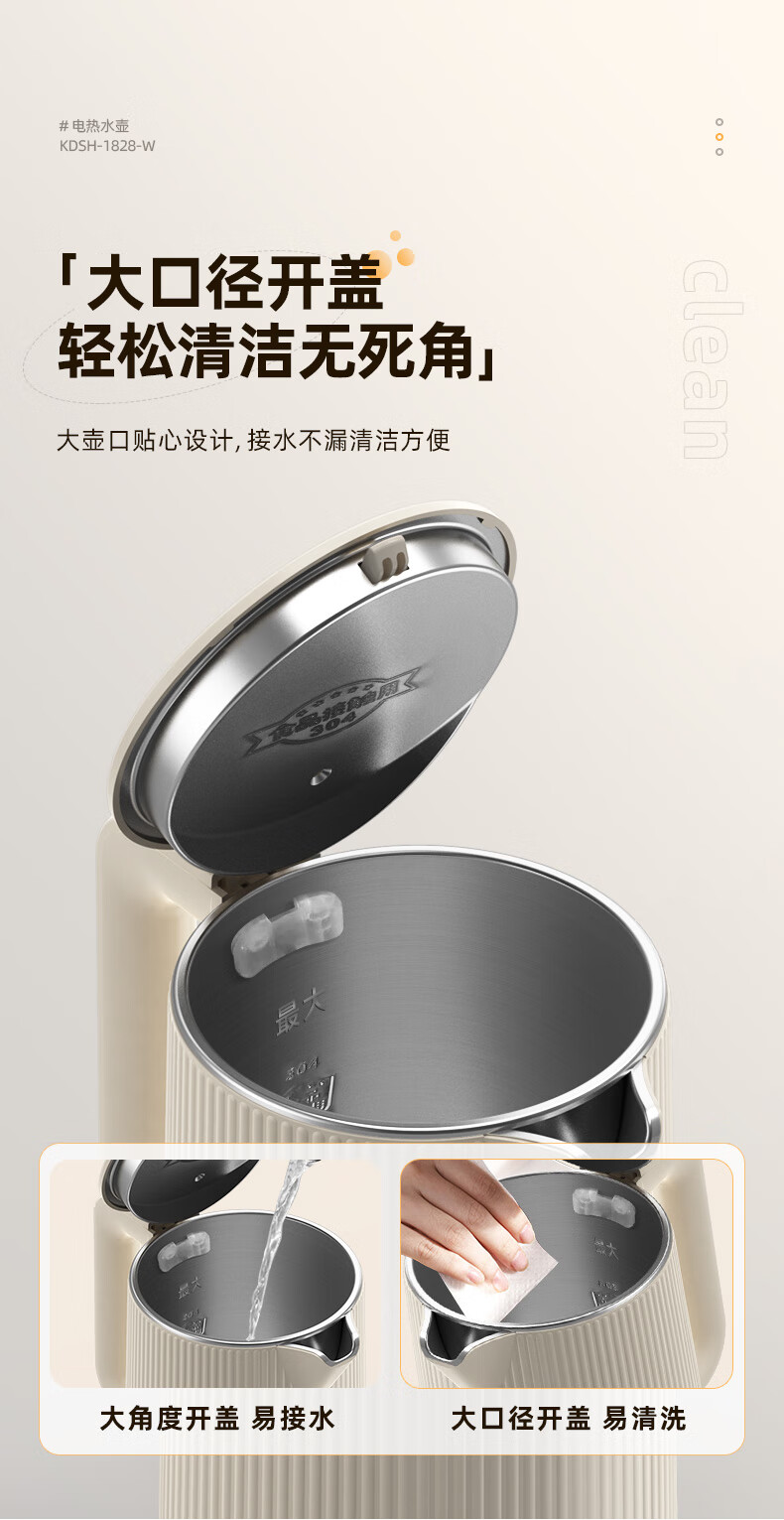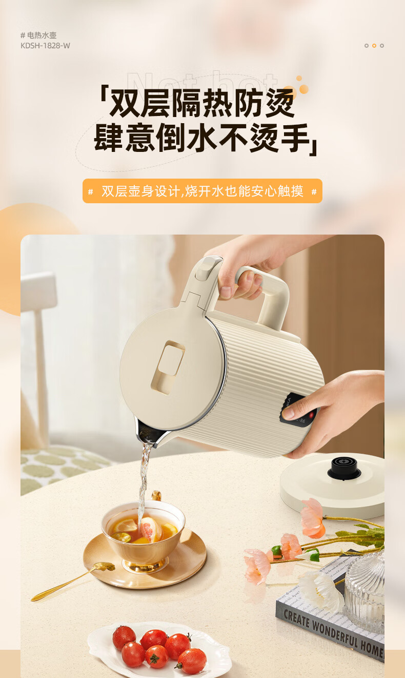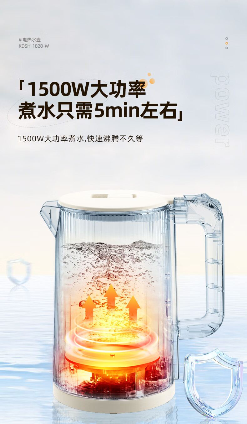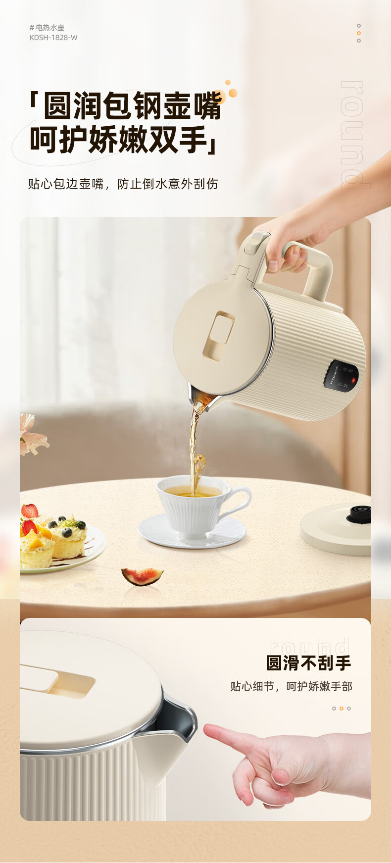 康佳(KONKA) KDSH-1828-W 1.8L 电热水壶 米色(单位:个)