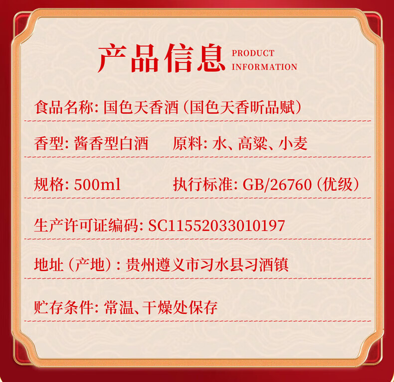 习酒 国色天香昕品赋 500ml 53度酱香型白酒 红色(单位:瓶)
