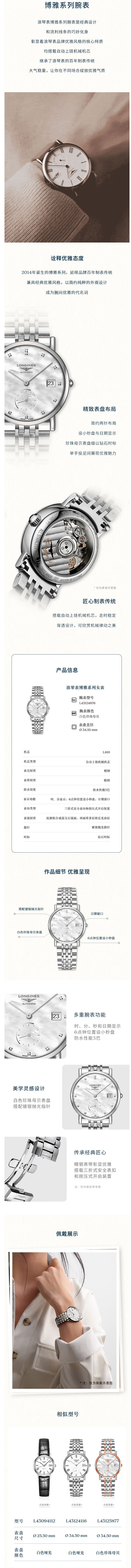 浪琴(LONGINES) L4.312.4.87.6 34.50mm 机械链带女表 白色(单位:块)