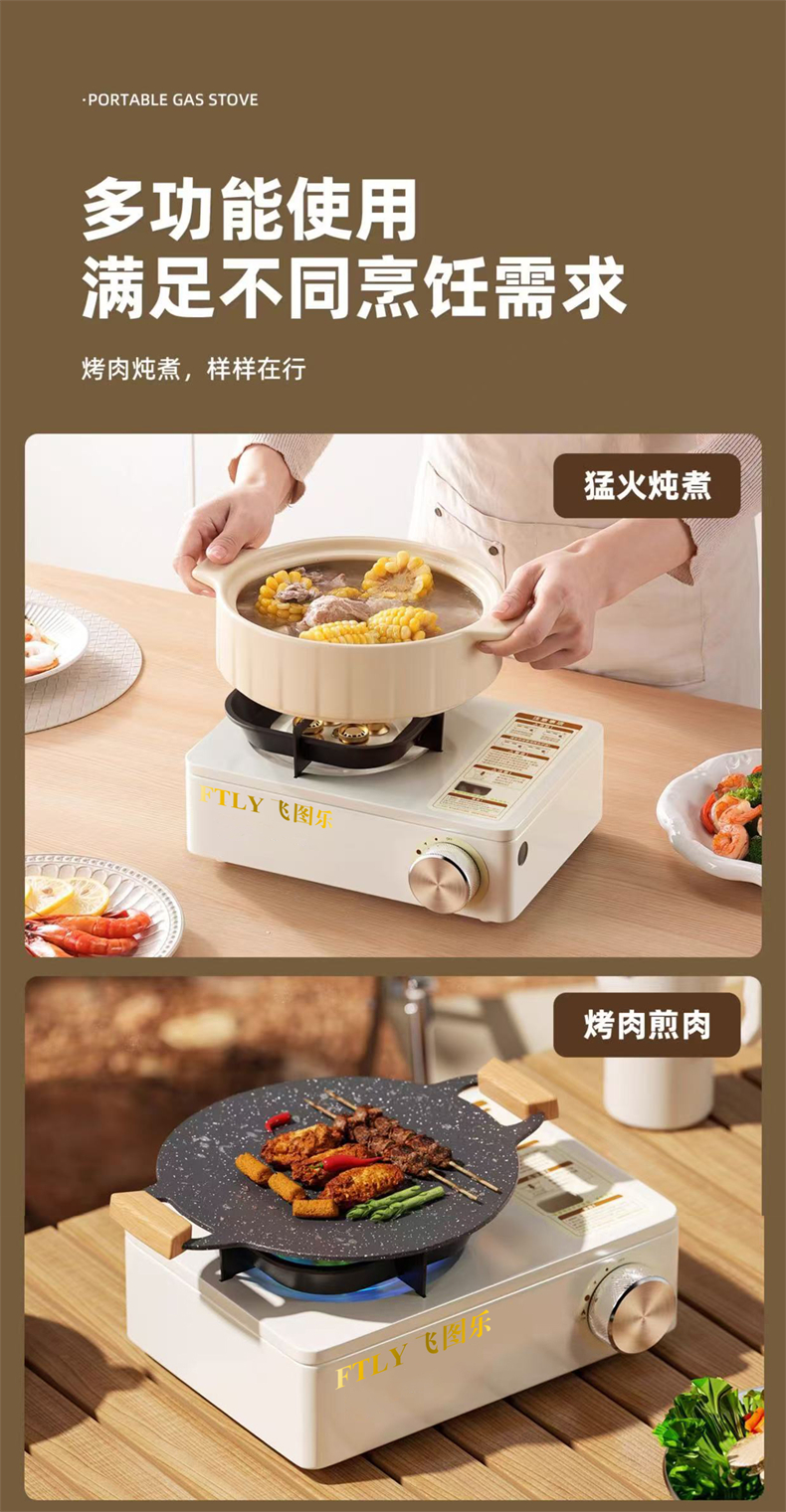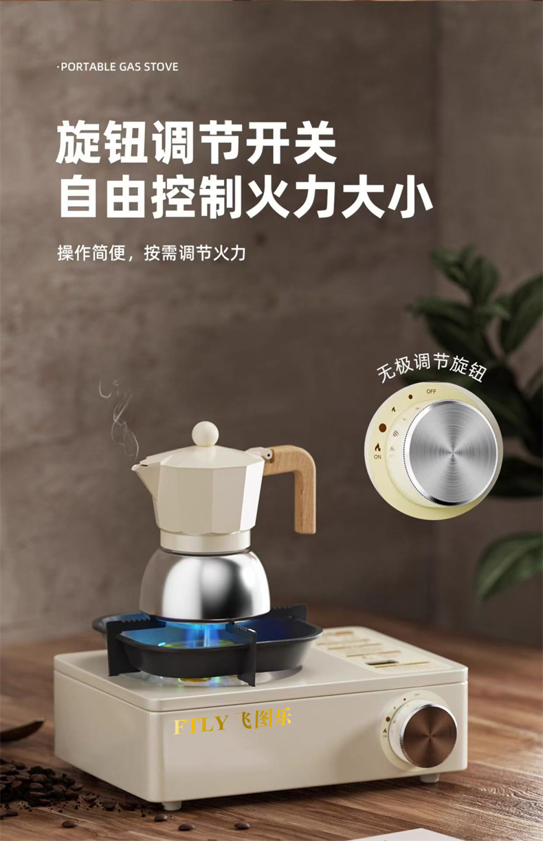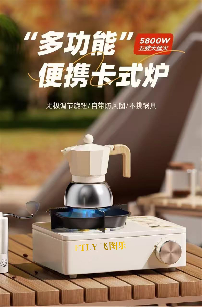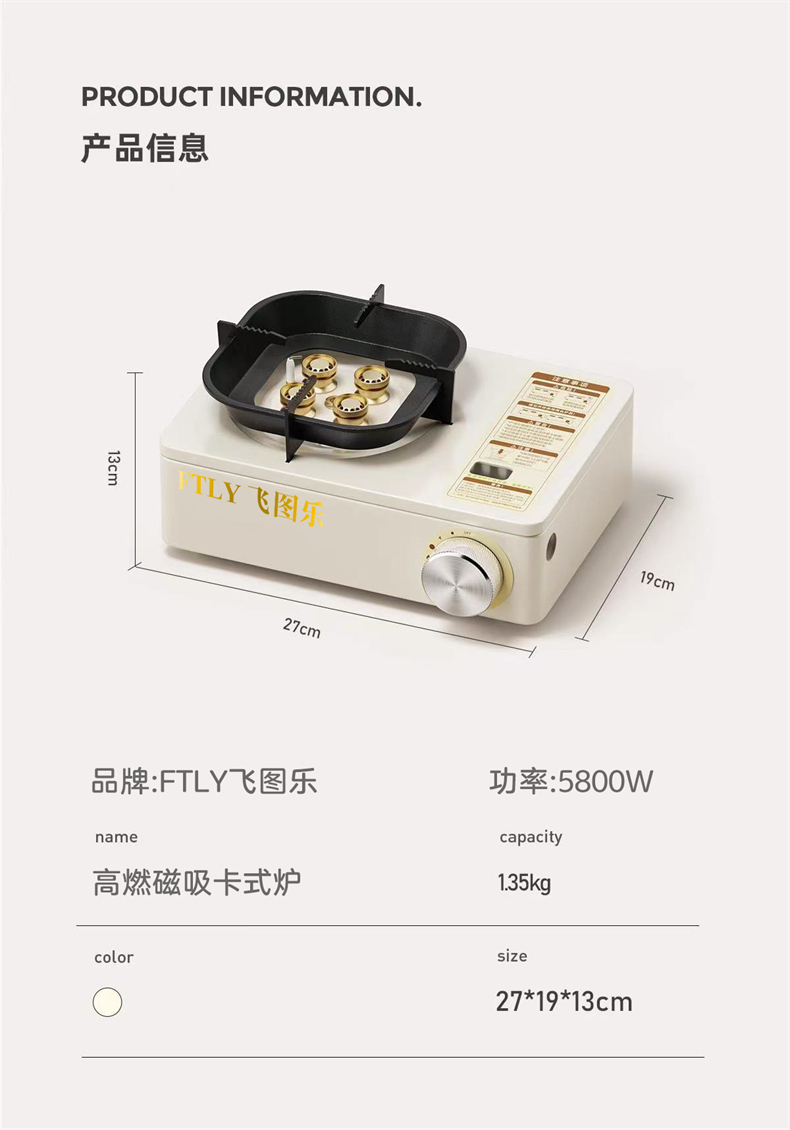 飞图乐(FTLY) KSL0300 27*19*13cm 户外高燃磁吸卡式炉 米白(单位:套)