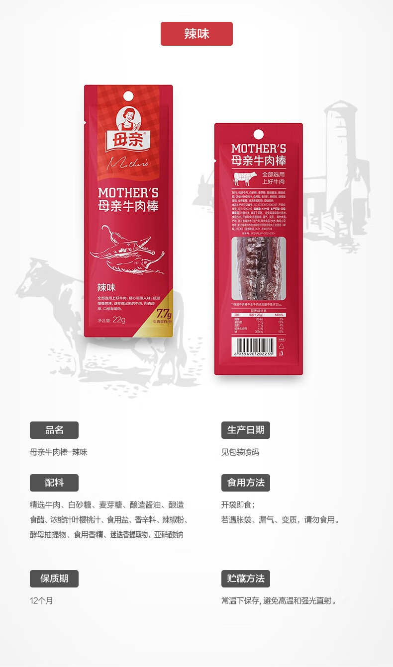 母亲 牛肉棒 22g*10根 黑胡椒味 褐色(单位:组)