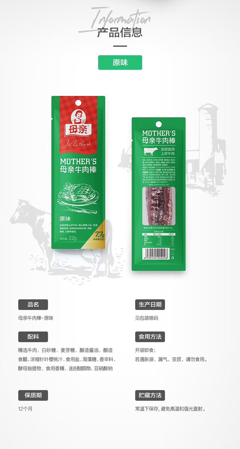 母亲 牛肉棒 22g*10根 原味 松石绿(单位:组)