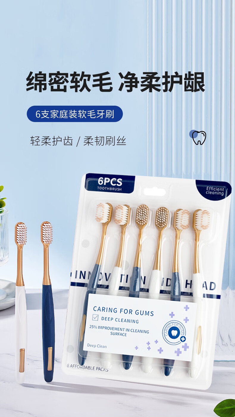SOAO 成人牙刷 6支装 口腔护理 混色(单位:板)