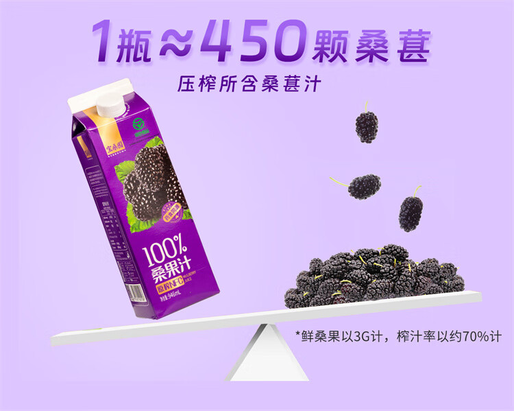 宝桑园(bosun) 100%桑果汁 946ml*1盒 果汁饮品 紫色(单位:盒)