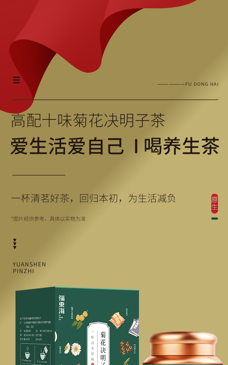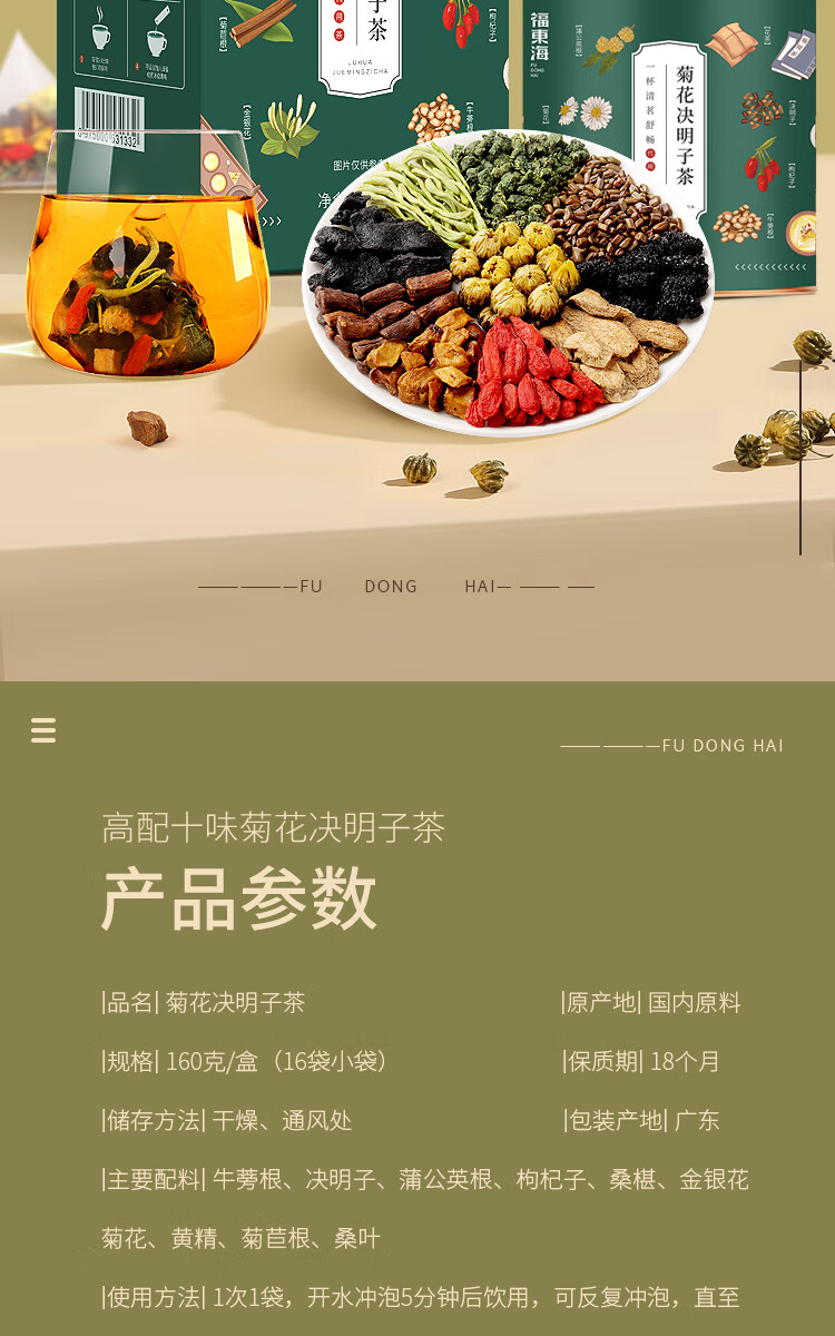 福东海(fudonghai) 菊花决明子茶 160g*1罐 滋补养生 军绿色(单位:罐)