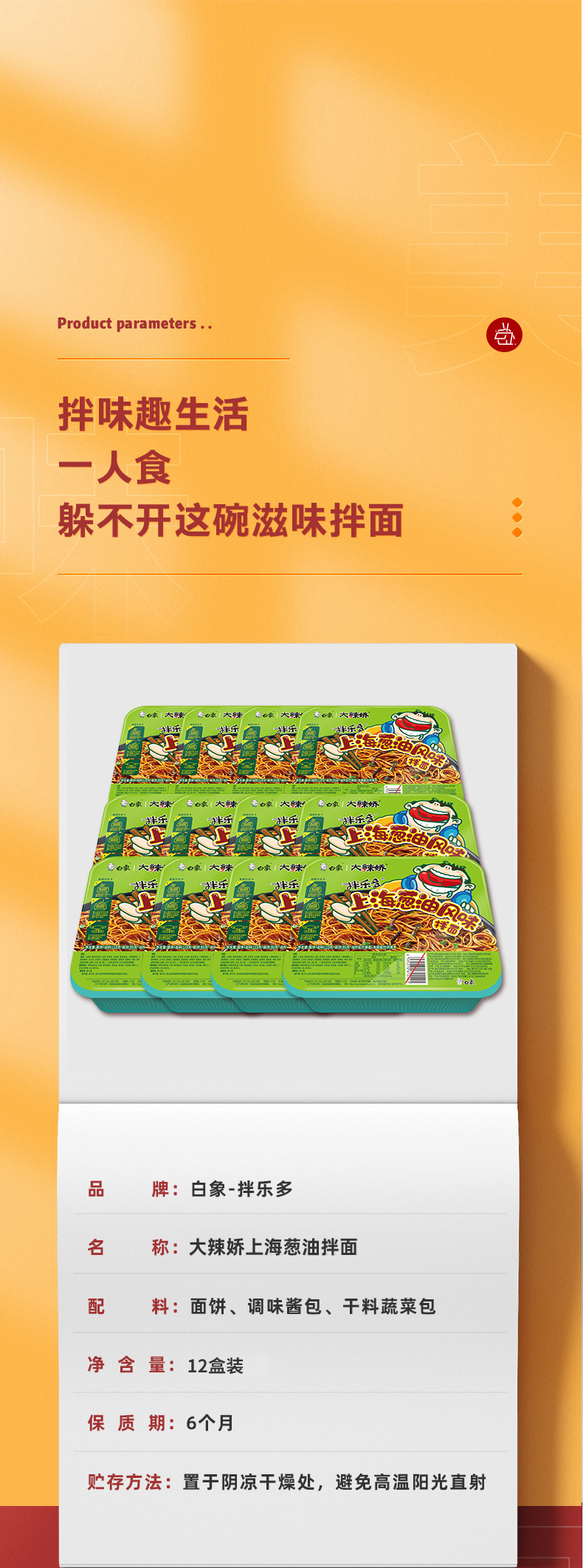 白象 拌乐多上海葱油风味 114g*12碗 干拌面 浅杉绿(单位:箱)