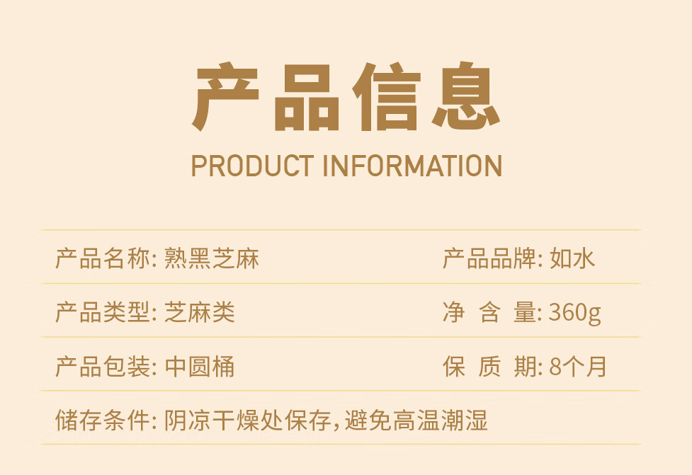 如水 熟黑芝麻 360g*1桶 五谷杂粮粗粮 红色(单位:桶)