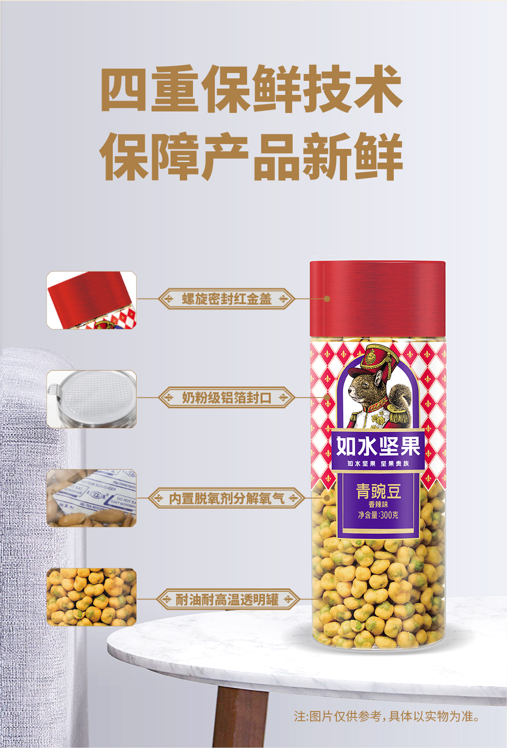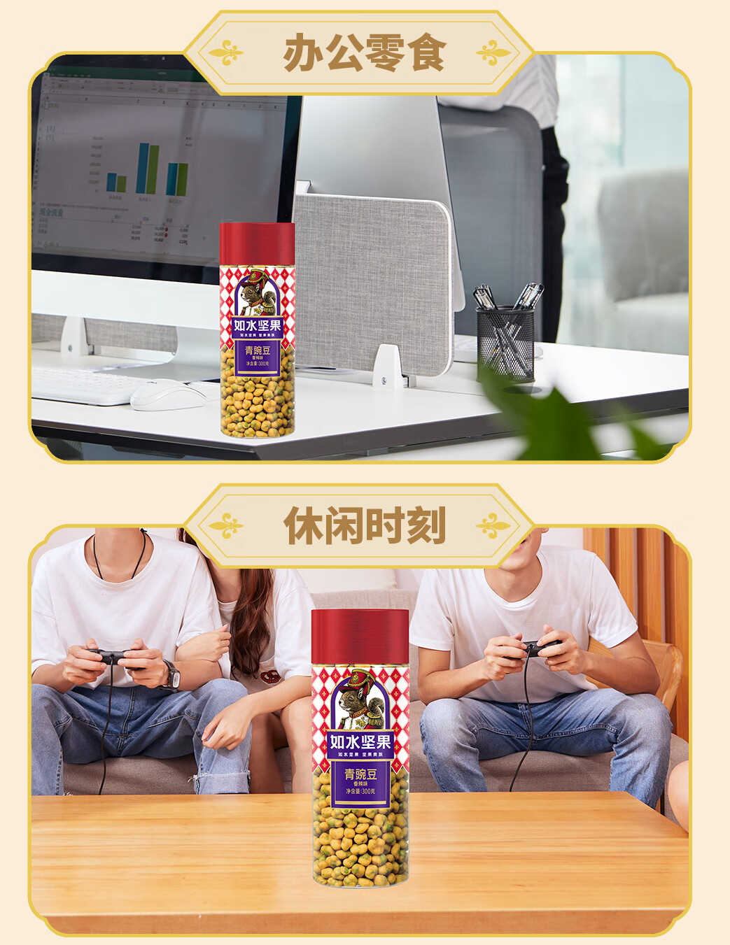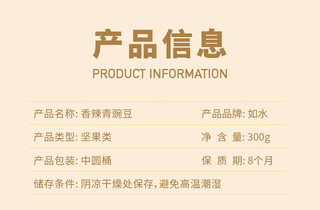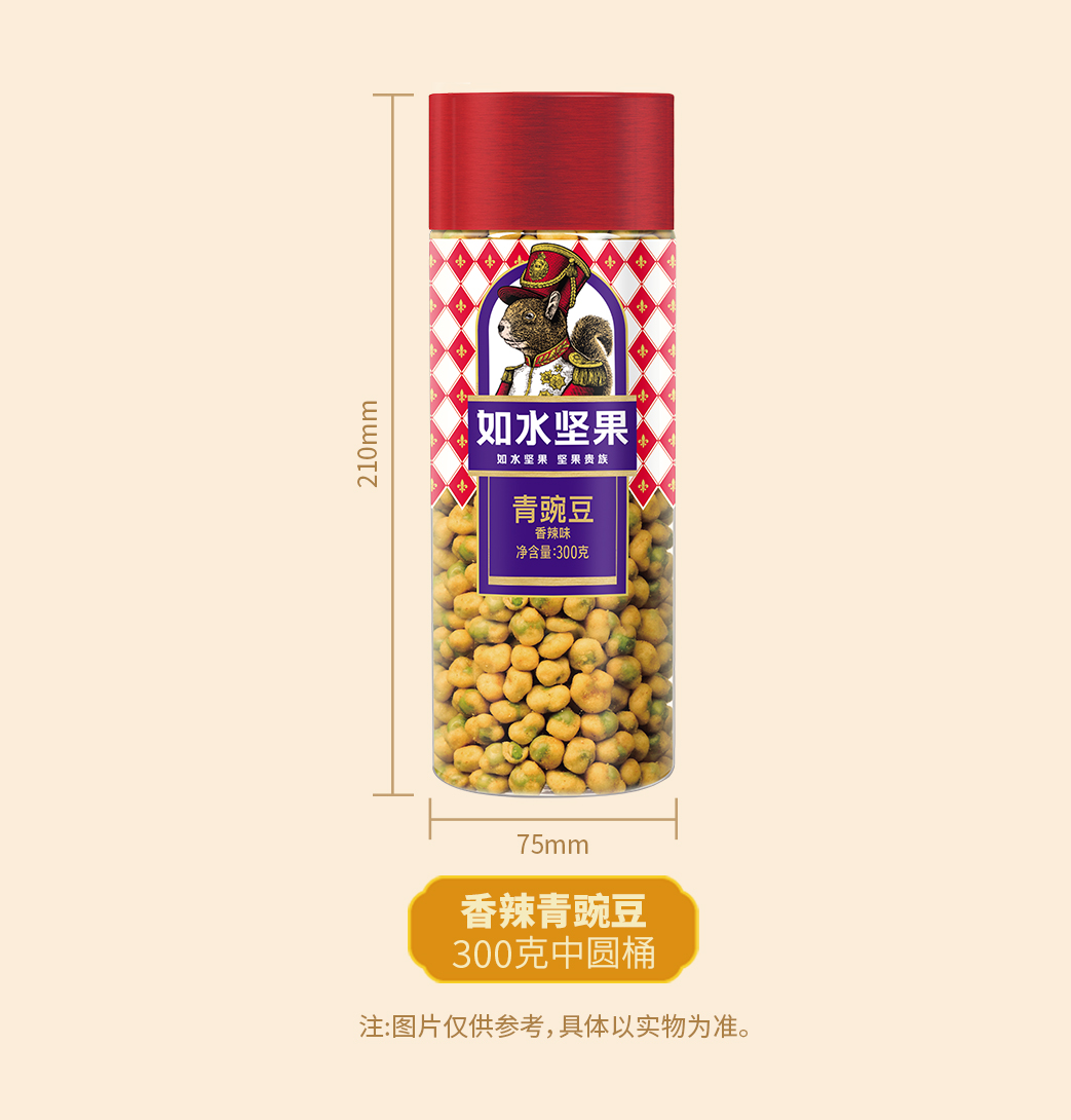 如水 香辣味青豌豆 300g*1桶 休闲零食小吃 红色(单位:桶)