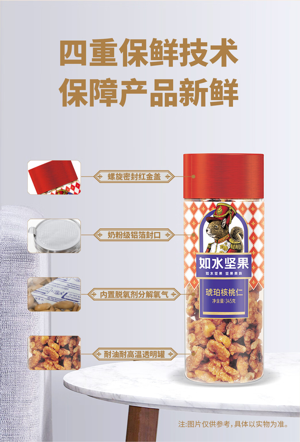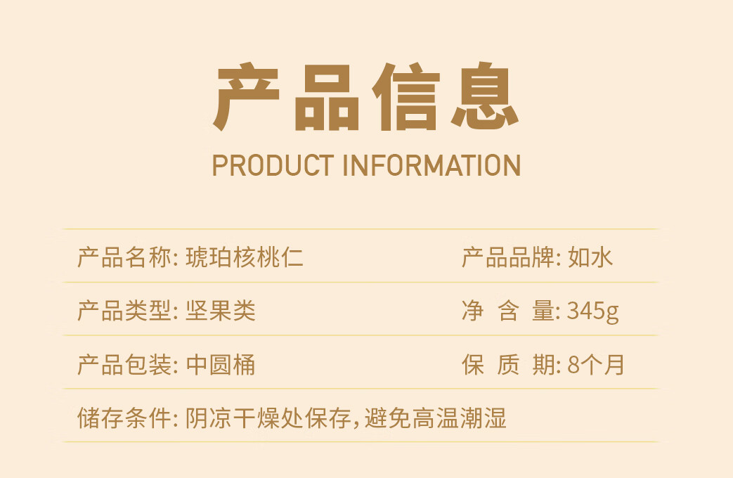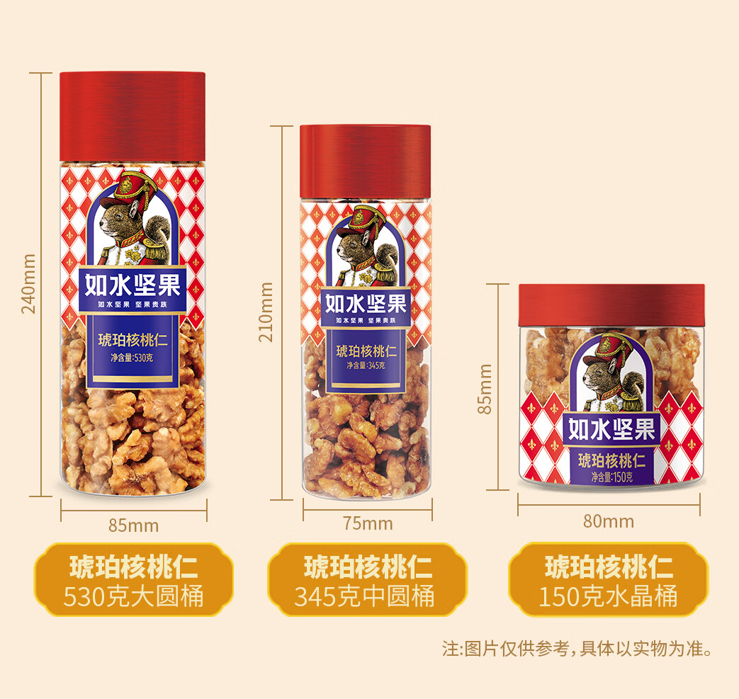 如水 琥珀核桃仁 345g/罐 烘焙生熟去皮休闲零食 枫叶色(单位:罐)