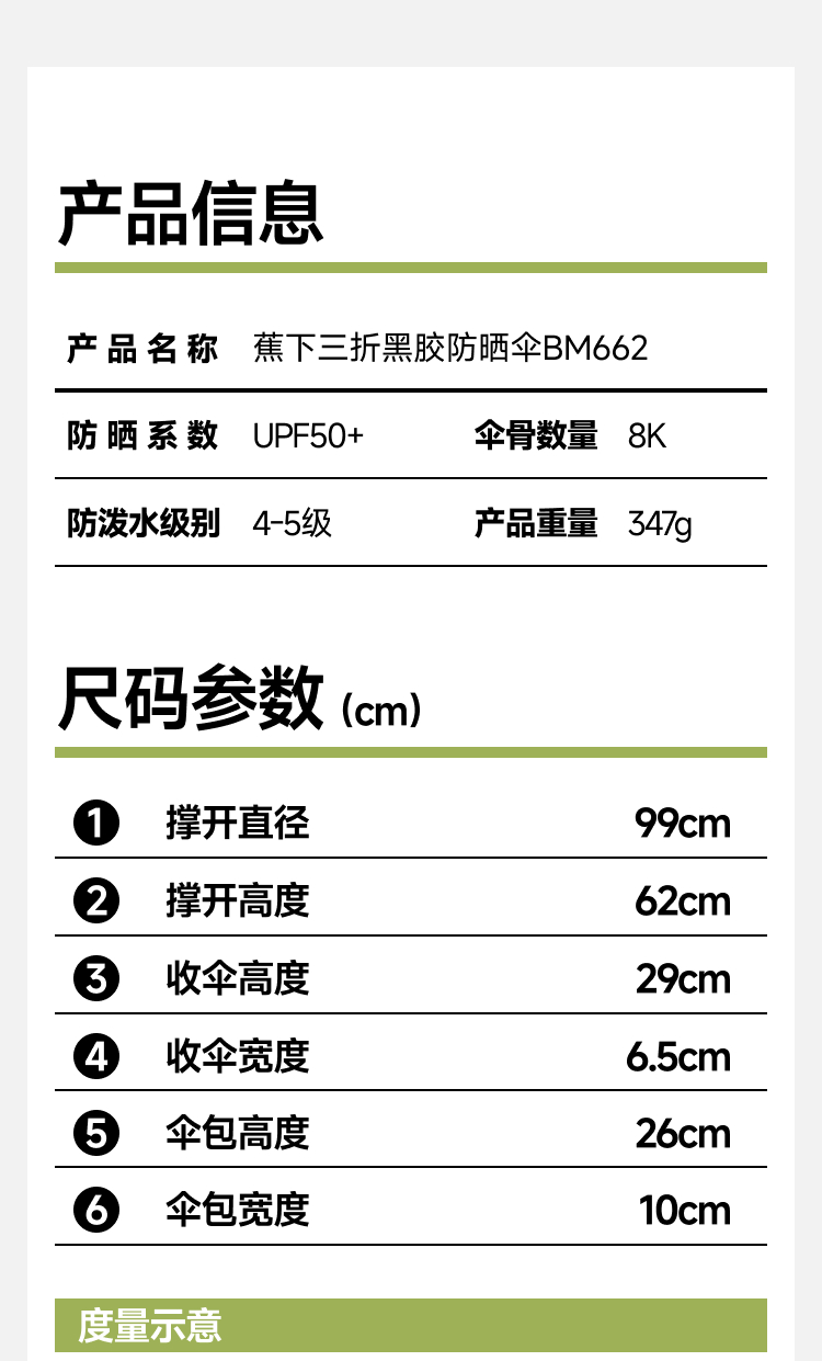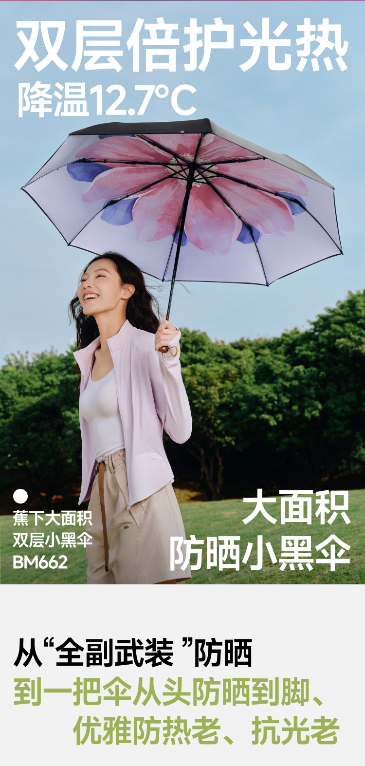 蕉下(beneunder) BM662 三折黑胶防晒伞 L.R.C科技防晒涂 庭芥(单位:把)
