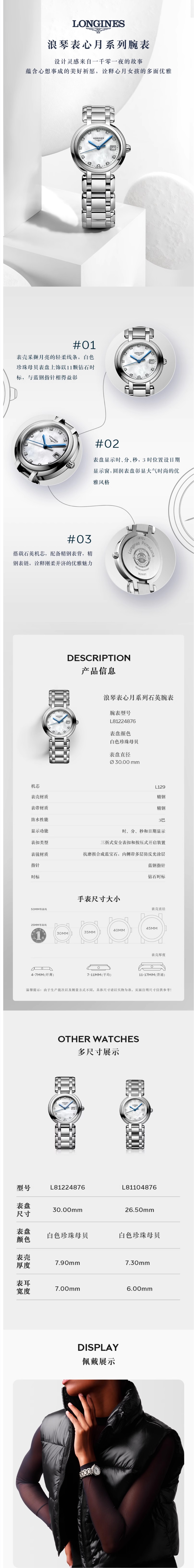 浪琴(LONGINES) L8.122.4.87.6 30.00mm 心月系列石英钢带女表 白色(单位:块)