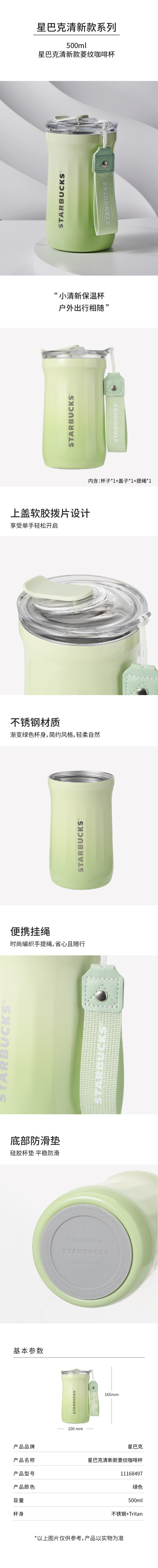 星巴克(Starbucks) 11168497 500ml 菱纹咖啡杯 绿色(单位:个)