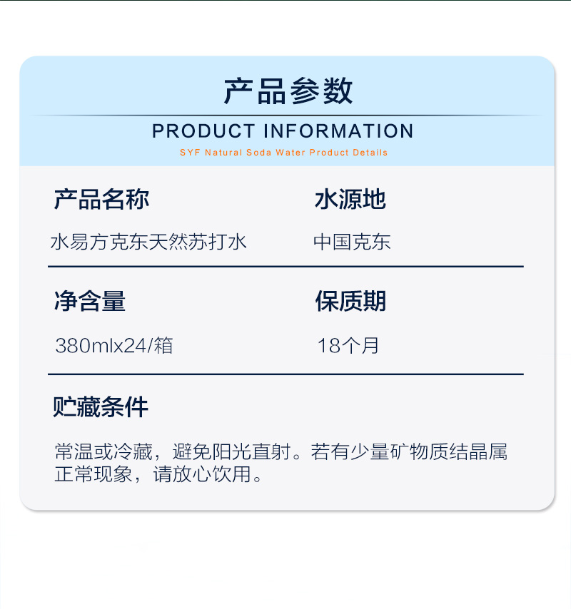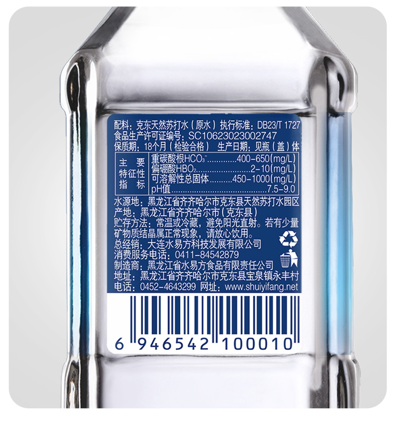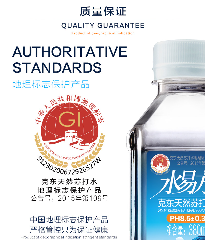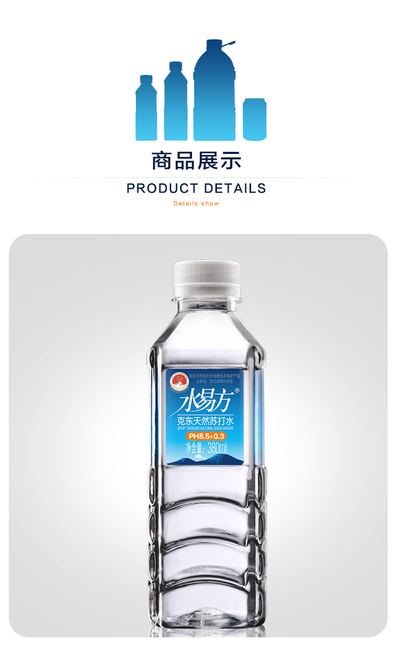 水易方(SYF) 克东天然苏打水 380ml*24瓶 无汽弱碱性饮用水 蓝色(单位:箱)