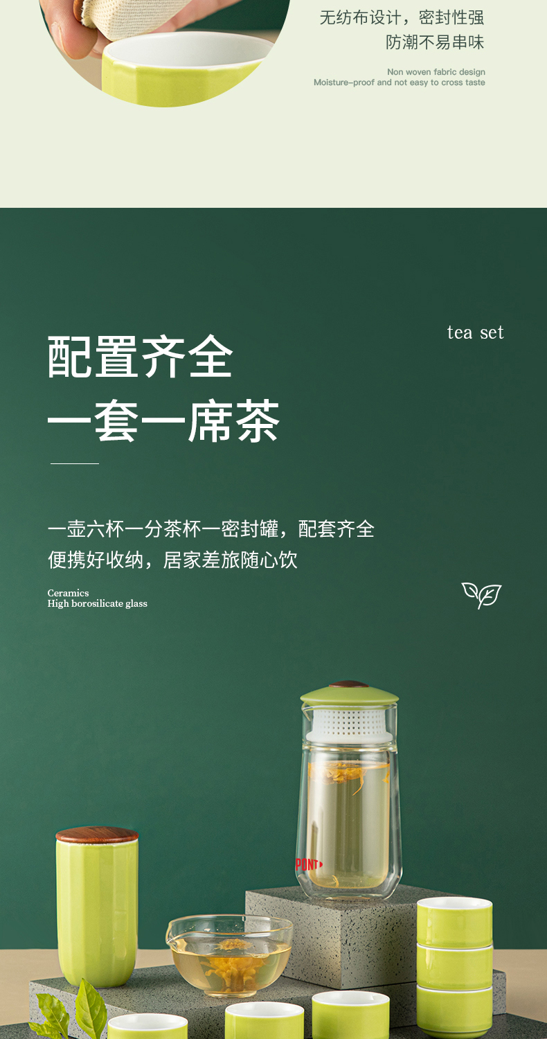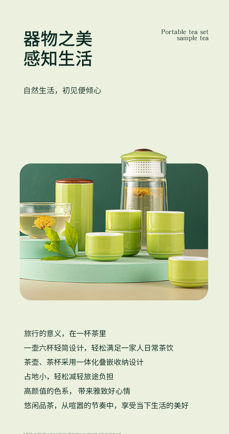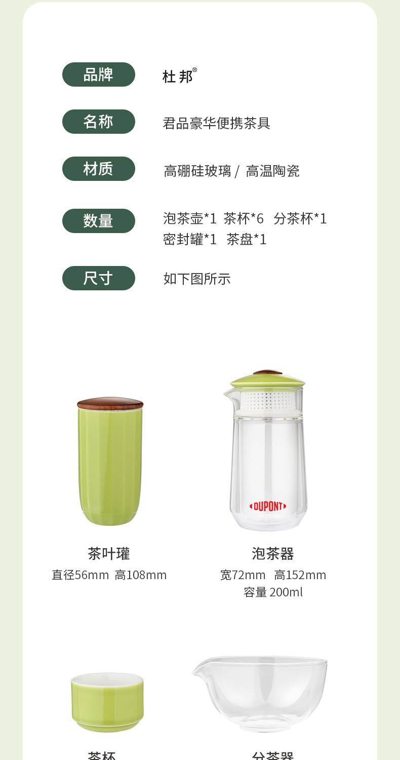 杜邦(DUPONT) PSJ-730 6件套 君品豪华便携茶具 绿色(单位:套)