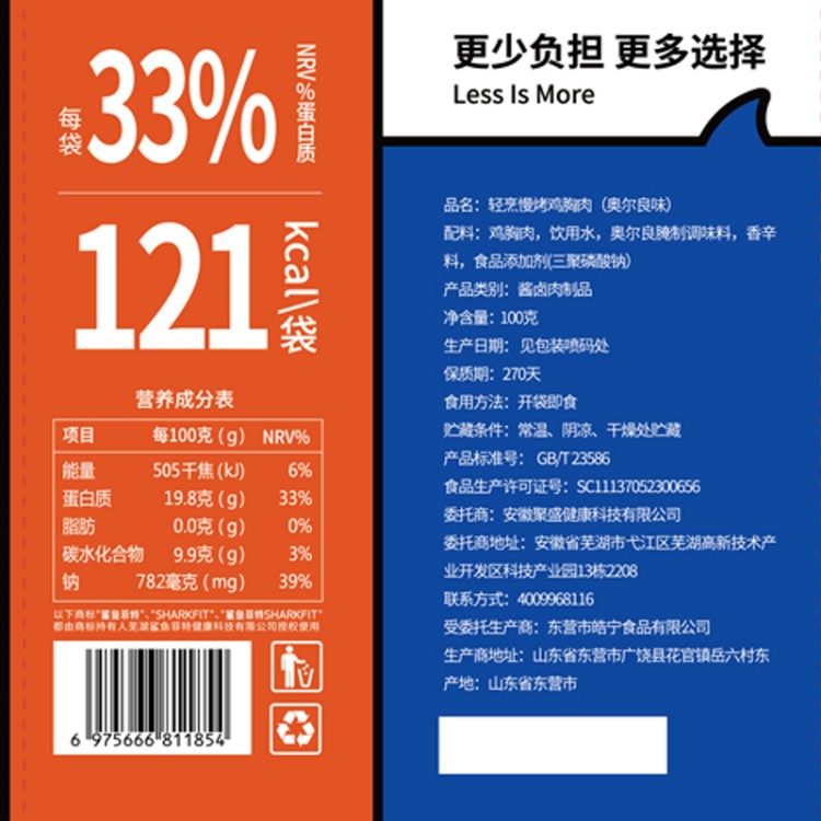 鲨鱼菲特/SHARKFIT 鲨鱼菲特轻烹慢烤鸡胸肉 100g*30包(奥尔良味+黑椒味+原味+孜然味混装) 低脂高蛋白 红色(单位:袋)
