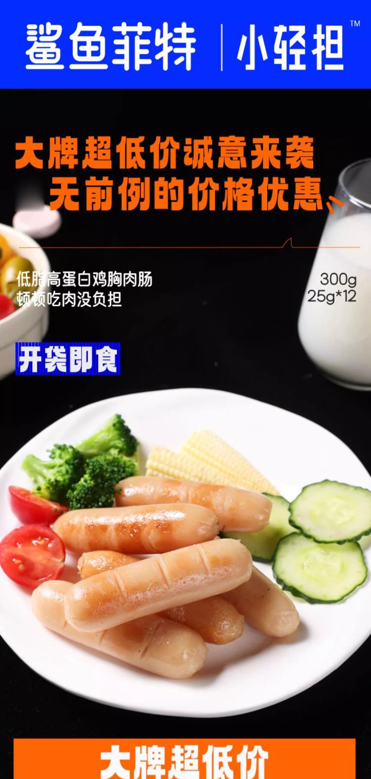 鲨鱼菲特/SHARKFIT 鲨鱼菲特低脂鸡胸肉肠 300g*2包 低脂高蛋白 藏青色(单位:袋)