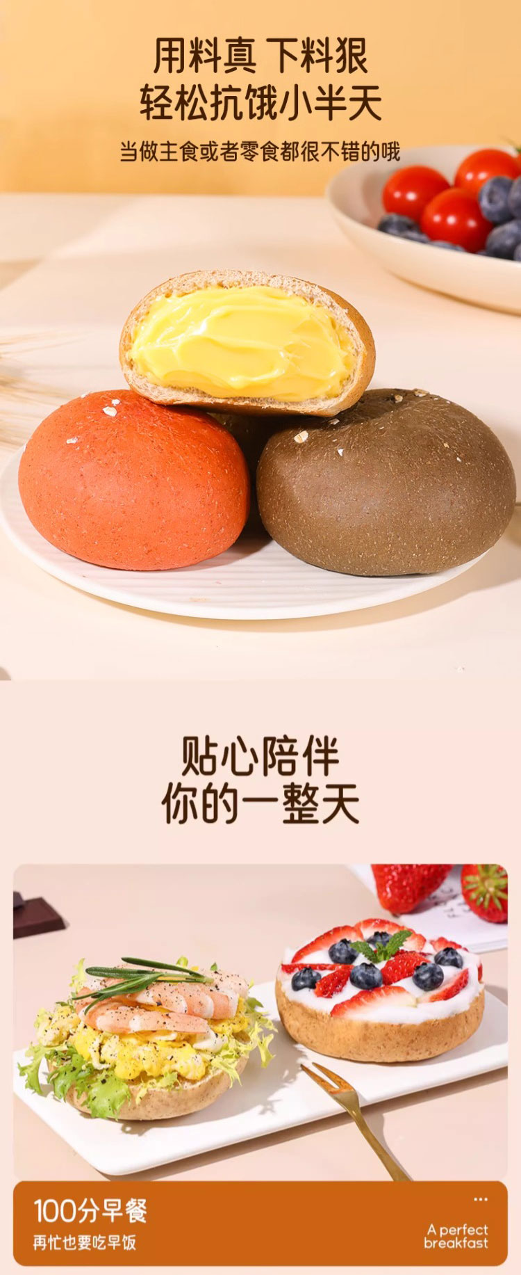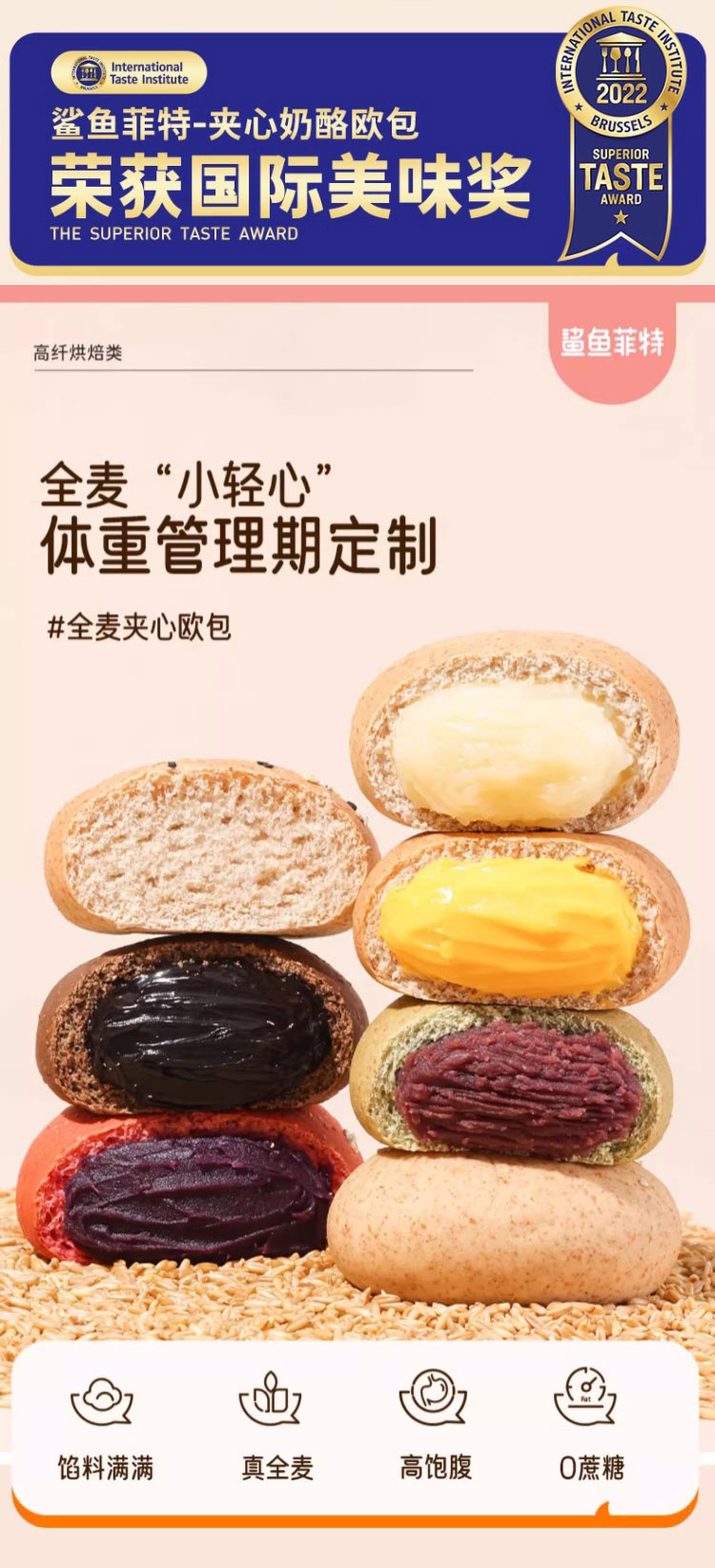 鲨鱼菲特/SHARKFIT 鲨鱼菲特全麦欧包 500g(奶黄芝士/紫薯/巧克力混装) 优质代餐糕点 藏青色(单位:箱)