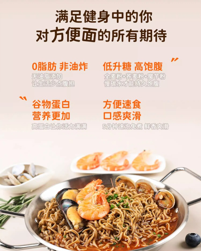 鲨鱼菲特/SHARKFIT 鲨鱼菲特荞麦魔芋方便面 葱油面80g*10包 0脂非油炸低钠低升糖 橙色(单位:箱)
