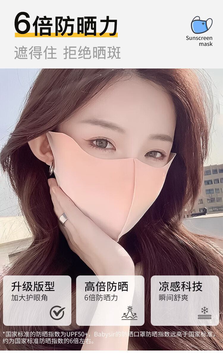 Babysir 防晒面具 冰丝鱼骨款 防紫外线 粉色(单位:个)