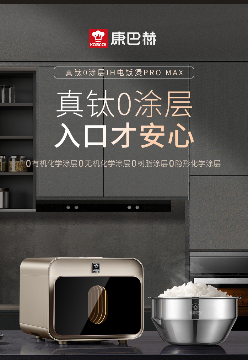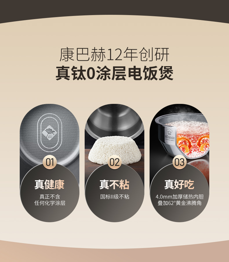 康巴赫 真钛0涂层IH电饭煲-PRO KF-40HC02 4L 银色(单位:台)