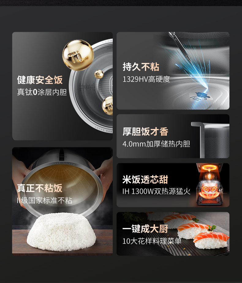 康巴赫 PRO-4L版本真钛0涂层IH电饭煲 KF-40HC02A 4L 金色(单位:台)