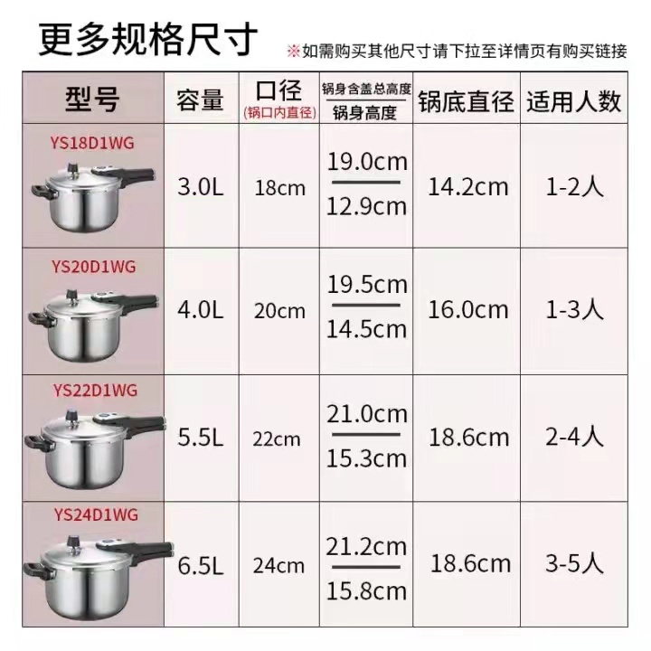 爱仕达(ASD) YS22D1WG 尺寸:22cm/容量:5.5L 智芯不锈钢压力锅 不锈钢色(单位:套)