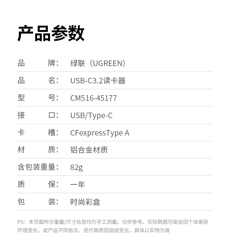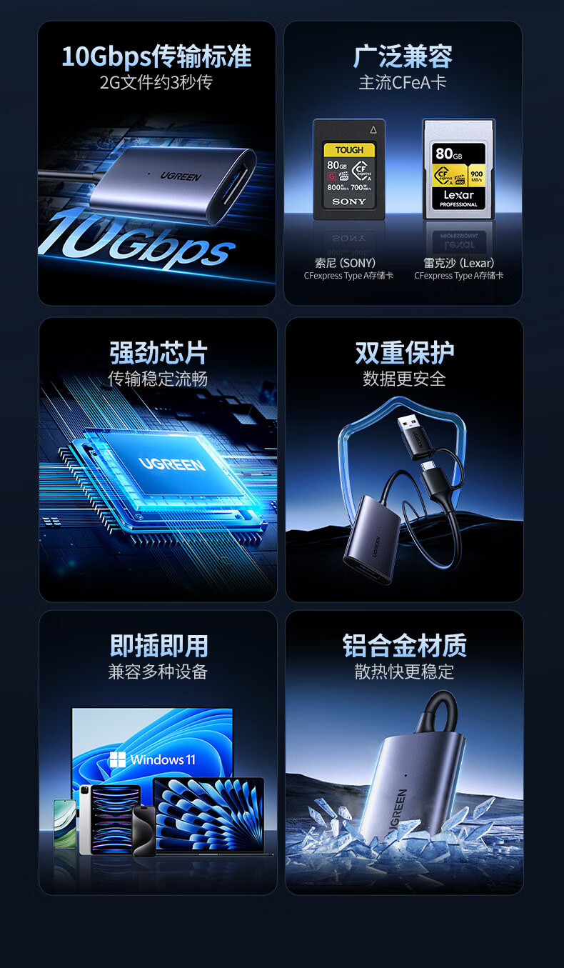 绿联(UGREEN) 45177 82g 高速CFeA读卡器 深空灰(单位:个)