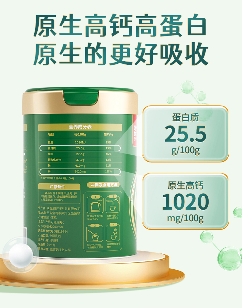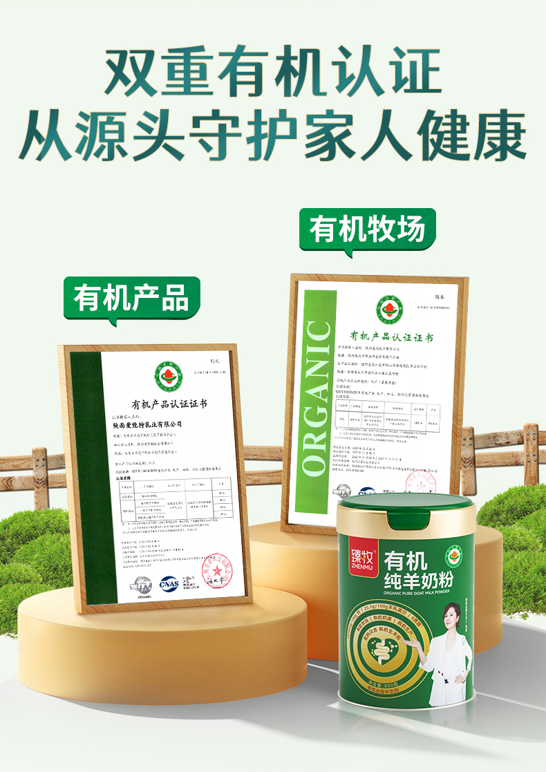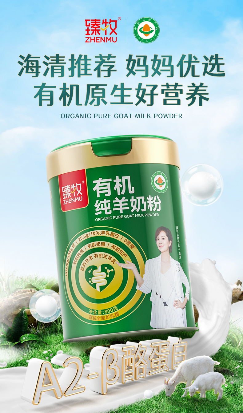 臻牧/zhenmu 有机纯羊奶粉 礼袋装 800g*2罐 绿色(单位:组)
