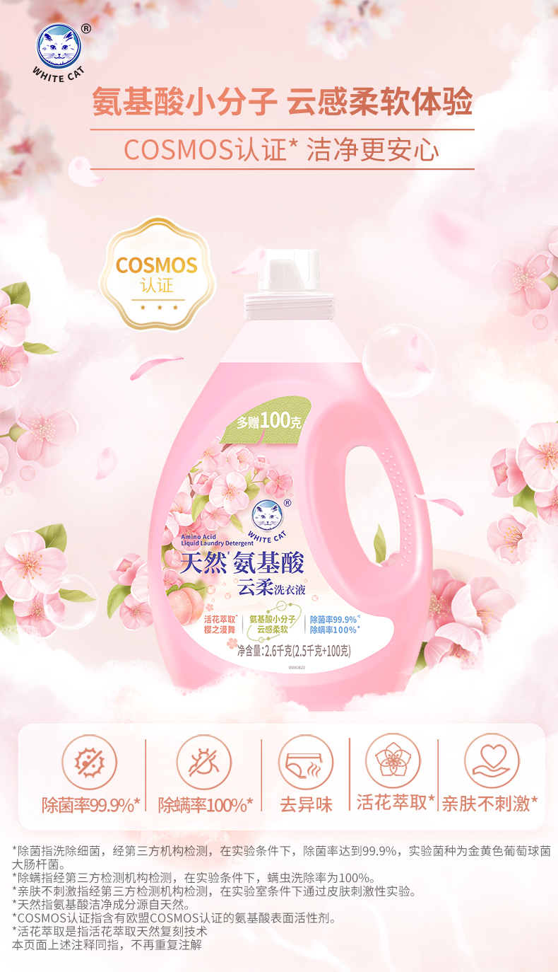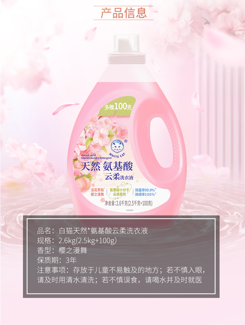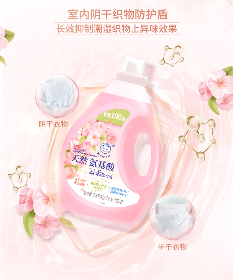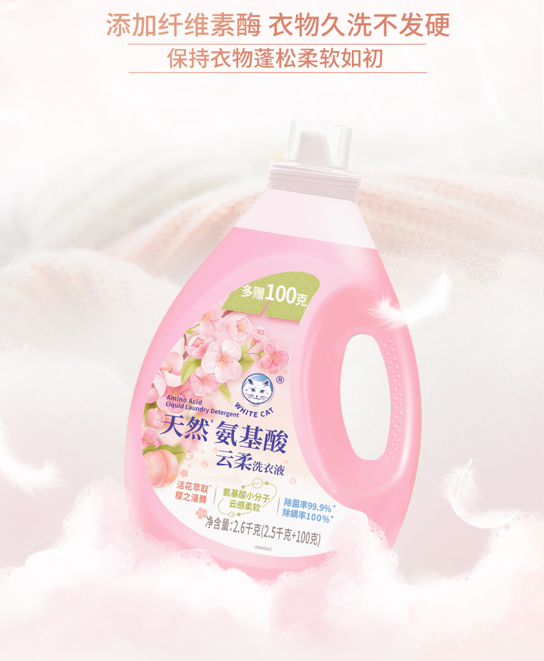 白猫 C23151000 2.6kg 天然氨基酸云柔洗衣液 茱萸粉(单位:桶)