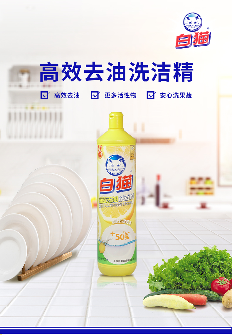 白猫 C11102402 900g 高效去油洗洁精 黄色(单位:瓶)