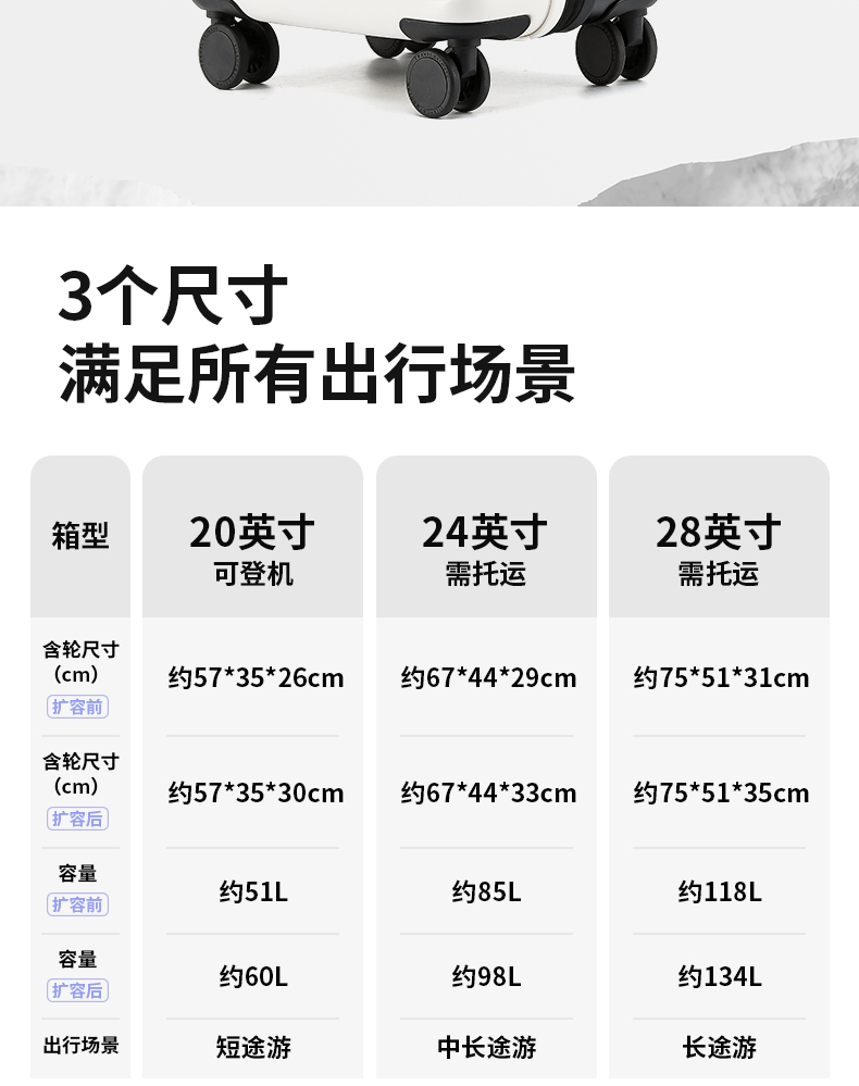 途帮(TOBOOG) 前开盖可拓展多功能 2105 57*35*26cm 20寸 白色(单位:个)