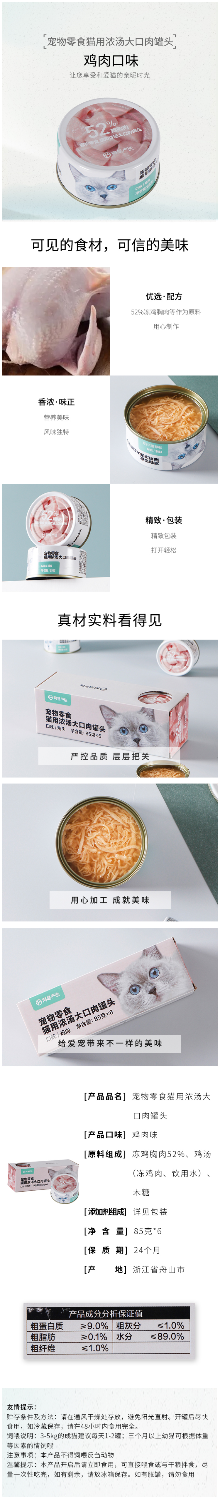 网易严选 猫零食 85g*6 猫用罐头鸡肉味 混色(单位:组)