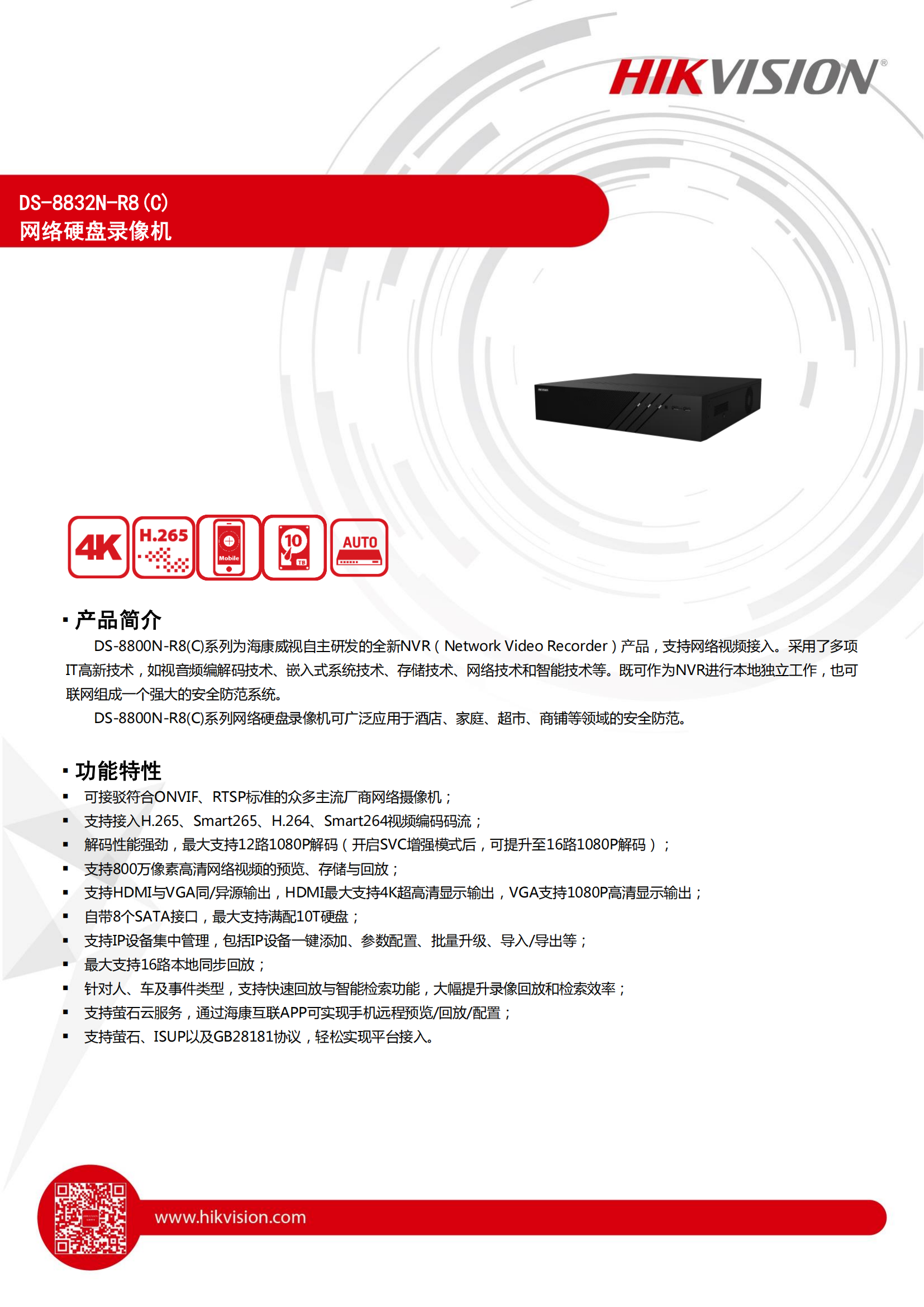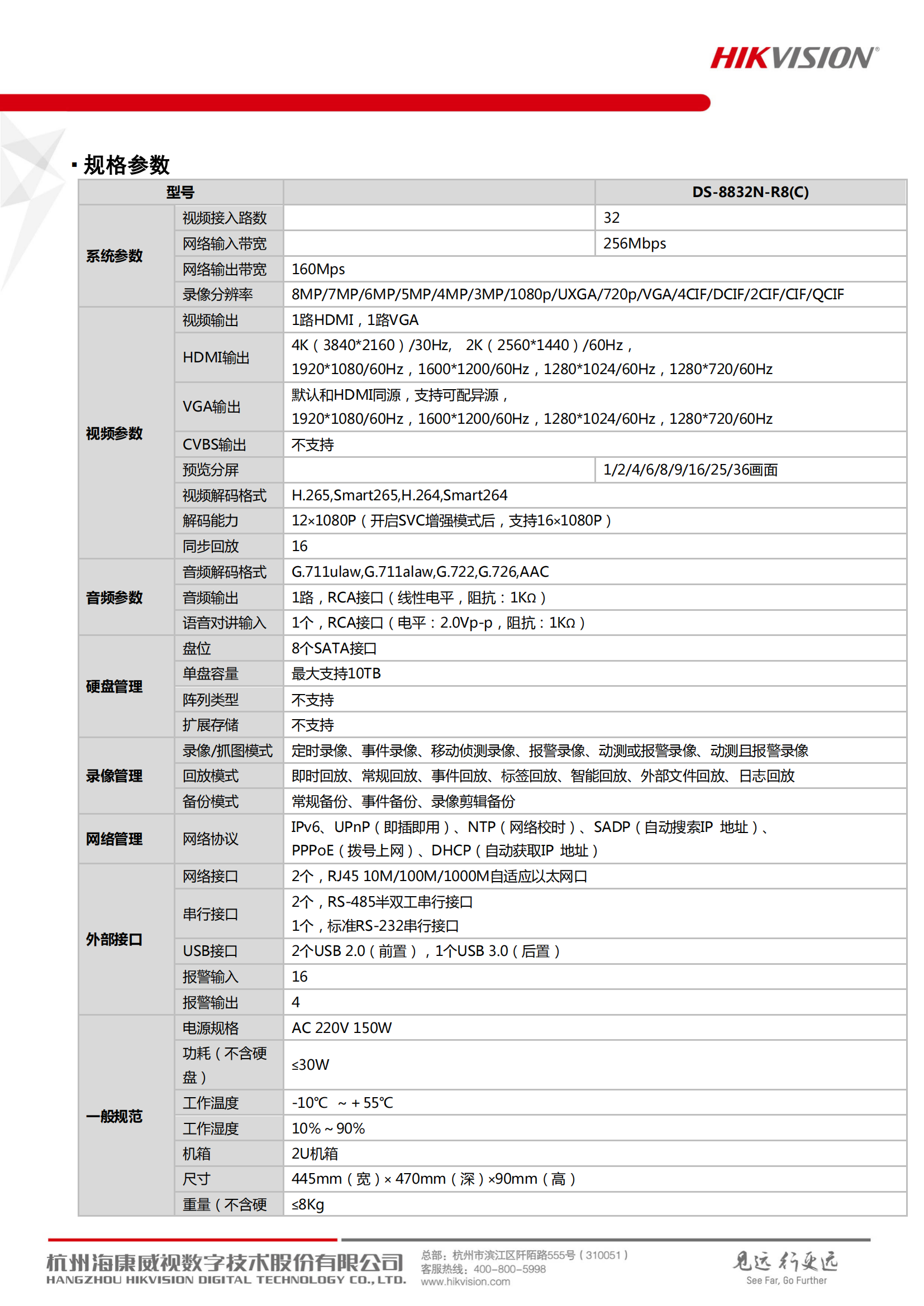 海康威视(HIKVISION) 硬盘录像机 DS-8832N-R8 32路8盘位 黑色(单位:台)
