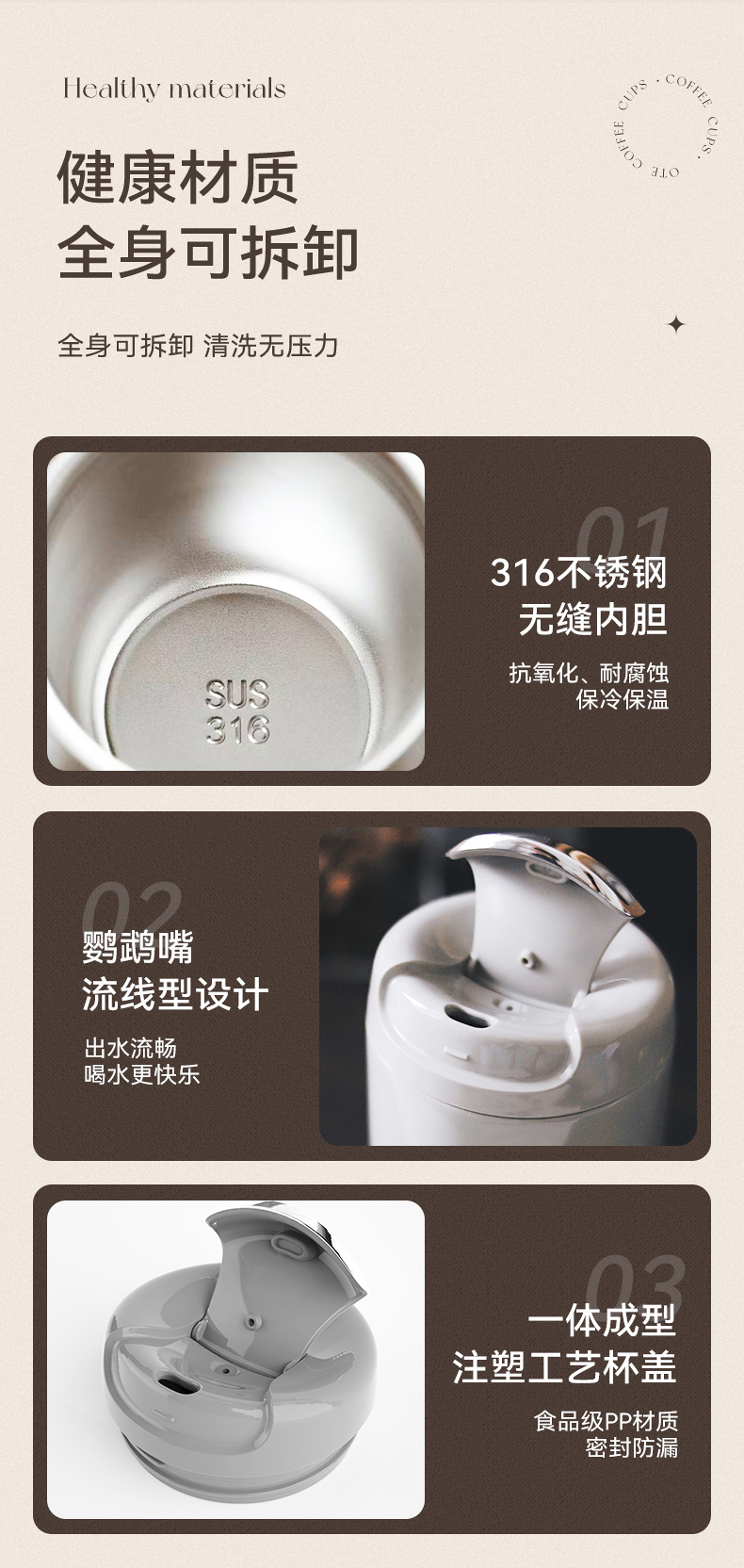 OTE Raincolor-W 350ml 意式复古Pro咖啡杯 灰色(单位:个)