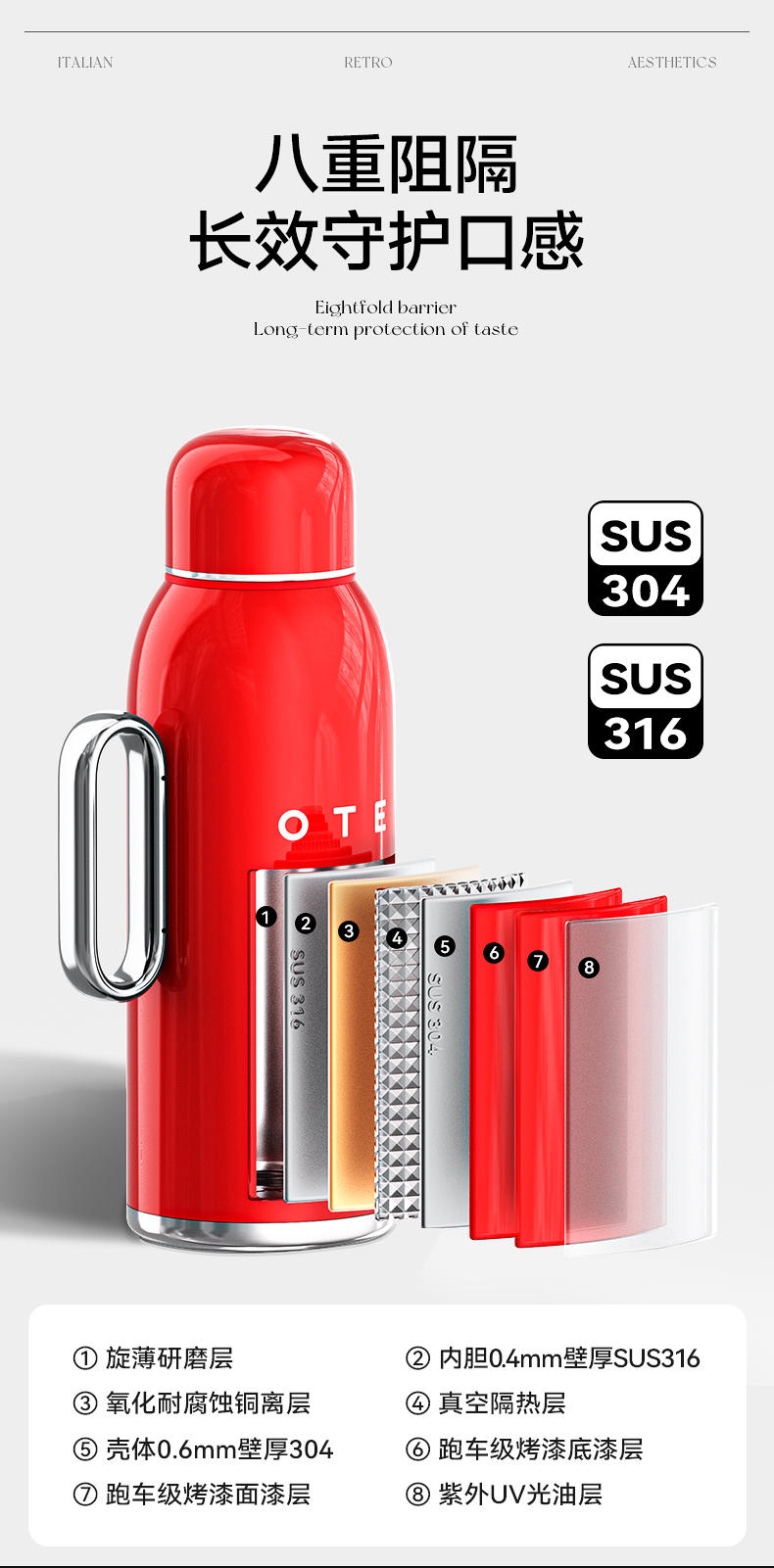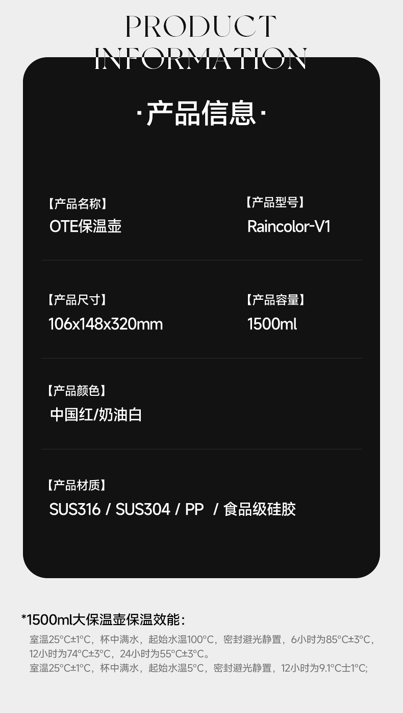 OTE Raincolor-V1 1500ml 航空铝合金保温壶 红色(单位:个)