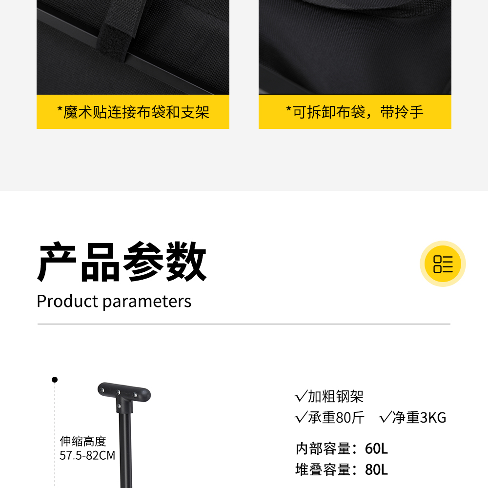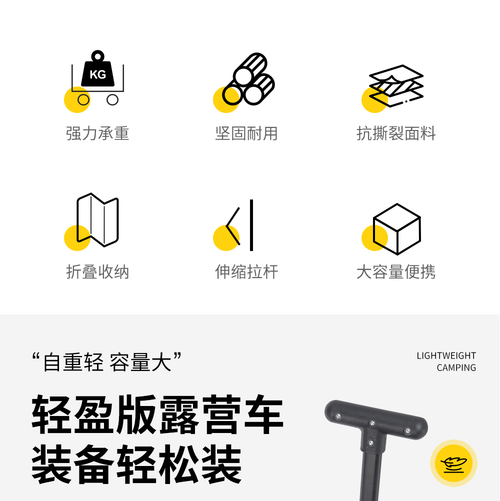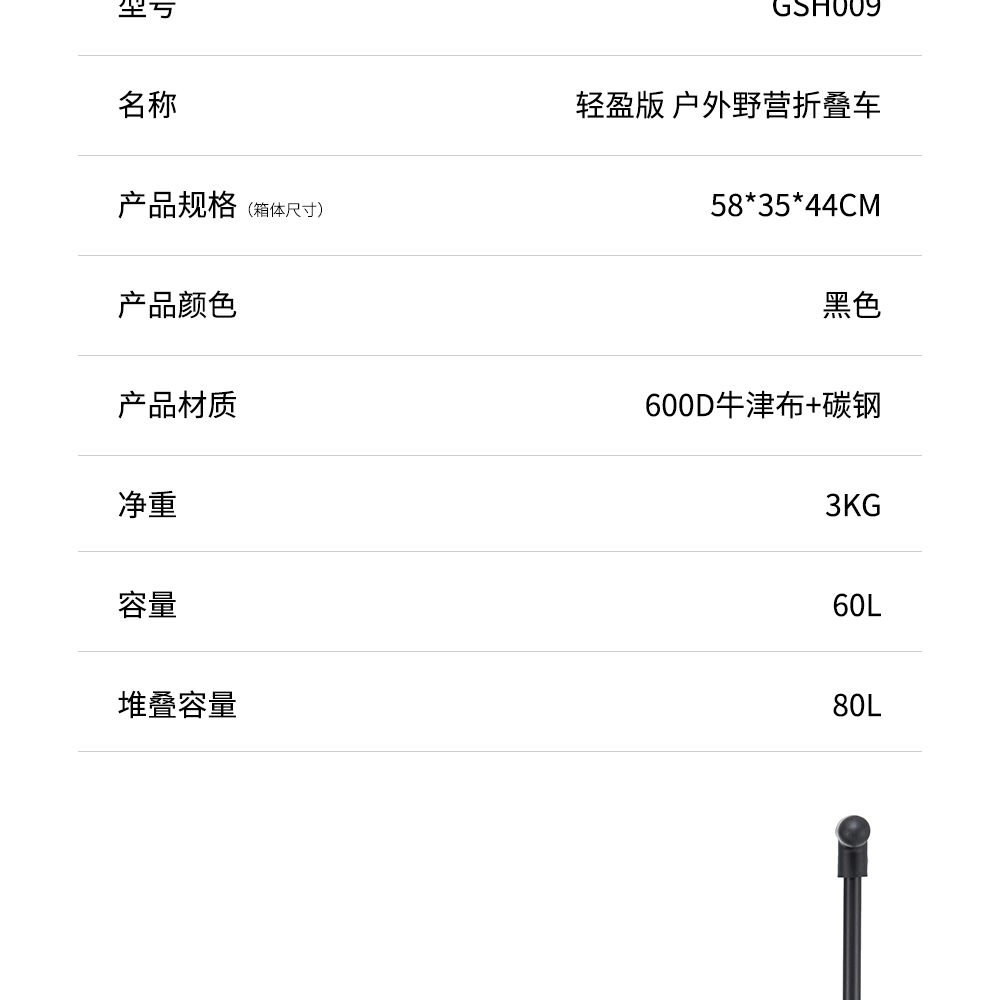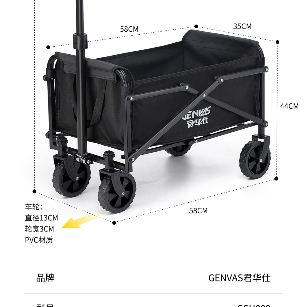 君华仕/GENVAS 轻盈版户外露营车 GSH009 58×35×44cm 曜石黑(单位:个)