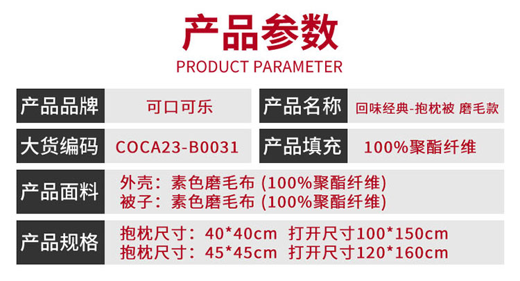 可口可乐(Coca-Cola) COCA23-B0031 45*45cm 味经典-抱枕被 灰色(单位:个)