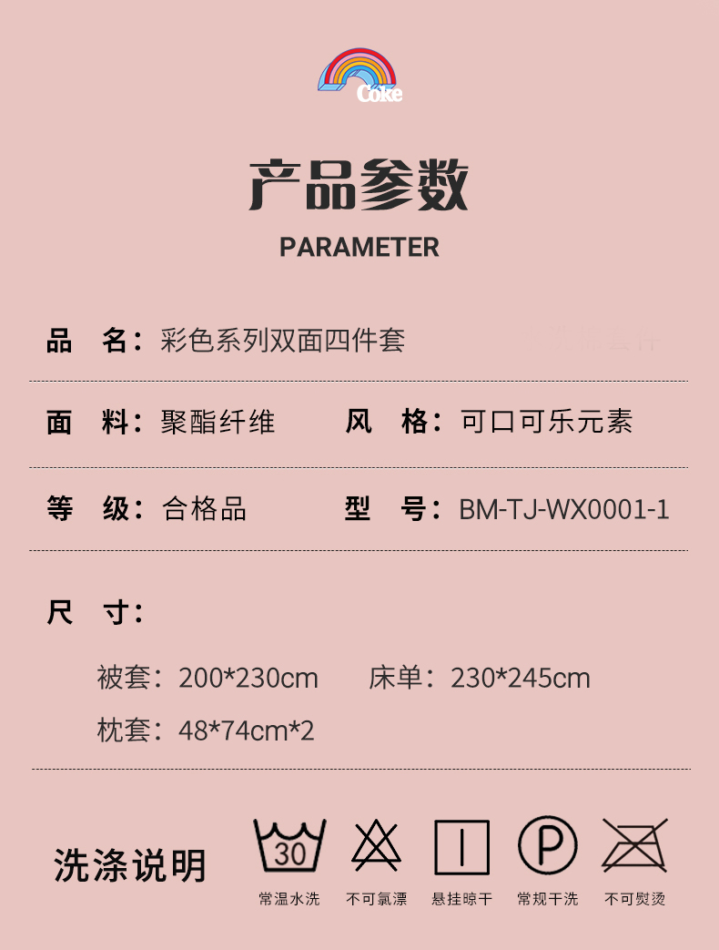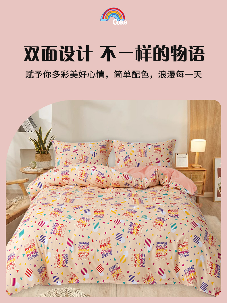 可口可乐(Coca-Cola) BM-TJ-WX0001-1 200*230cm 彩色系列双面四件套 繁花似锦(单位:套)