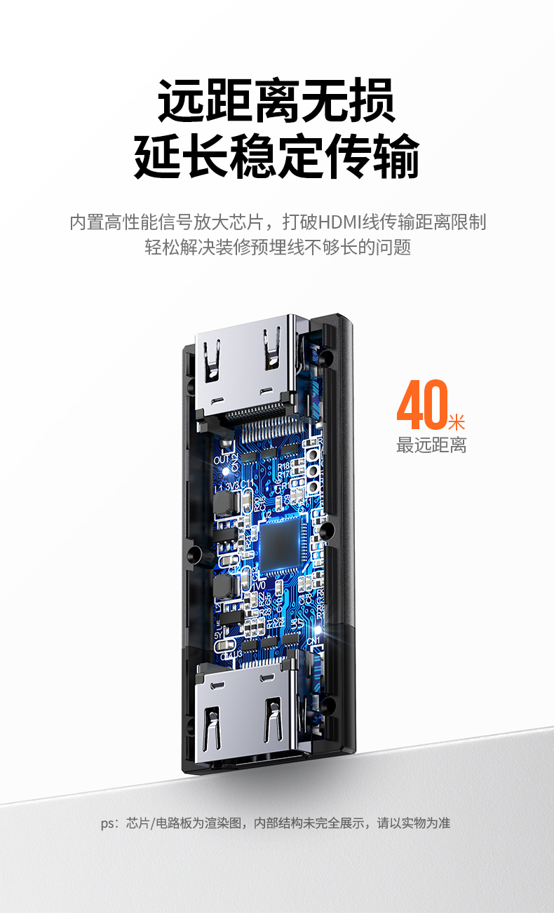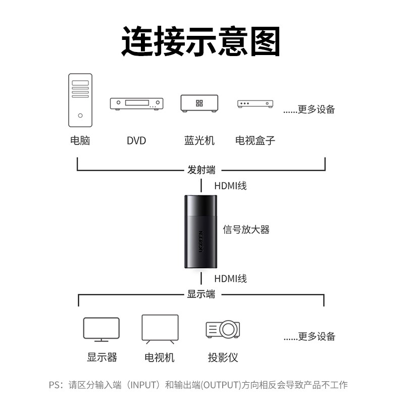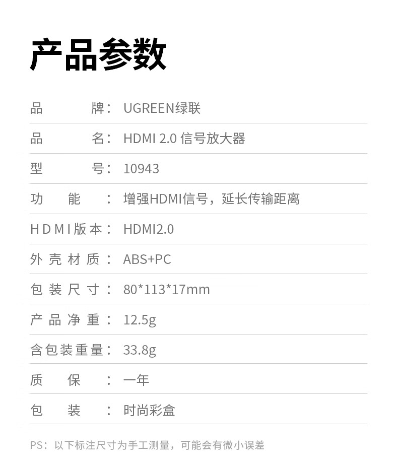绿联(UGREEN) 10943 34g HDMI延长器40米 黑色(单位:个)
