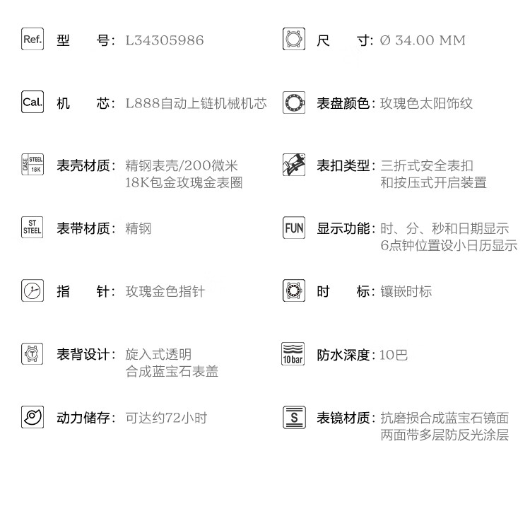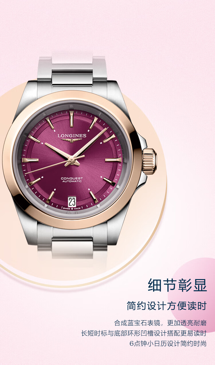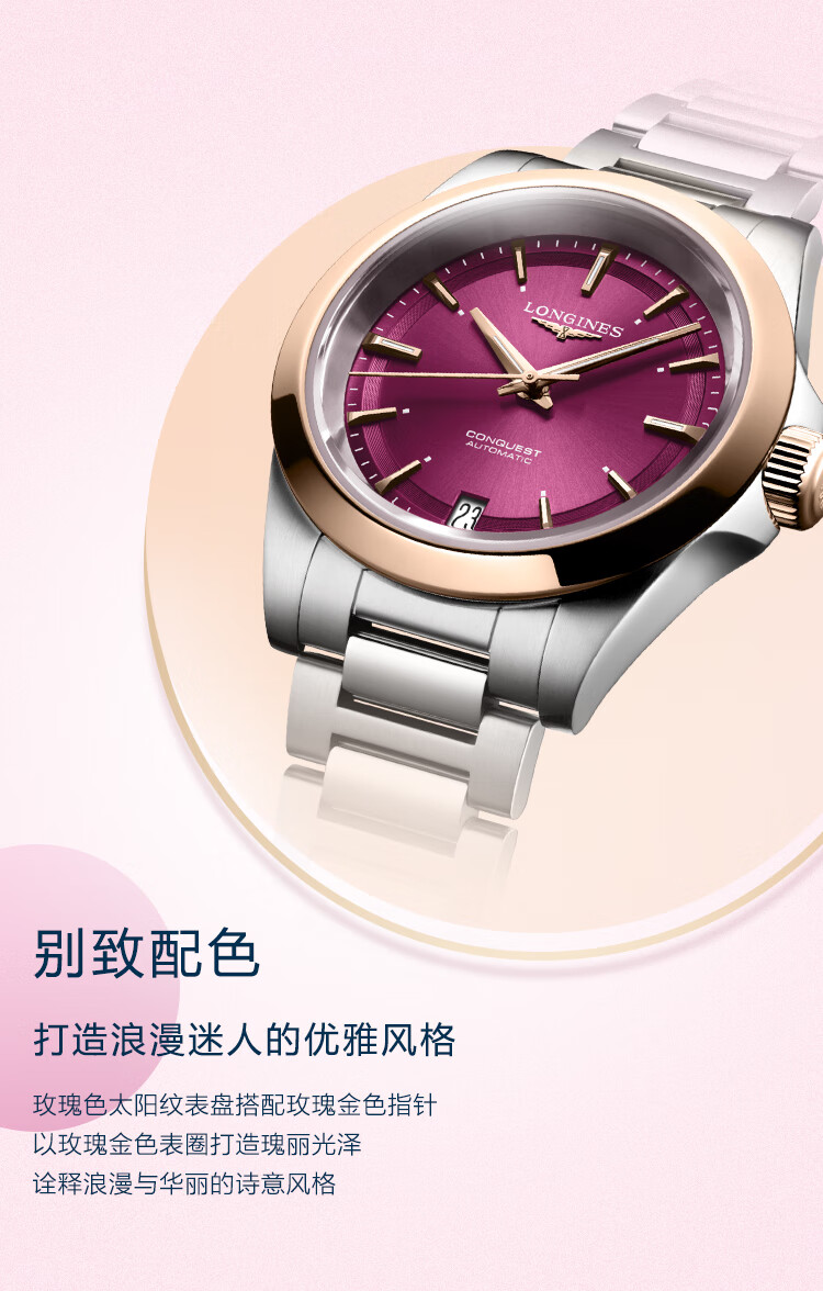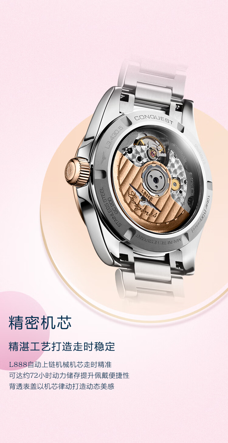 浪琴(LONGINES) L3.430.5.98.6 34.00mm 康卡斯列悦动机械女表 粉红色(单位:块)