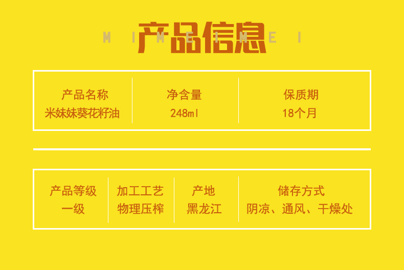 米妹妹(MIMEIMEI) 葵花籽油 248ml*1 非转基因 混色(单位:瓶)