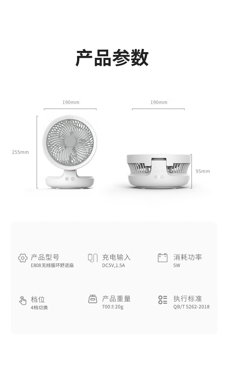 爱登(edon) E808 充电款 风扇 白色(单位:台)