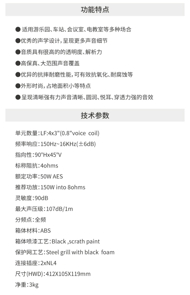 BBS 会议室多功能室演讲教学培训专用高保真全频音柱扬声器 YS-430 只 黑色