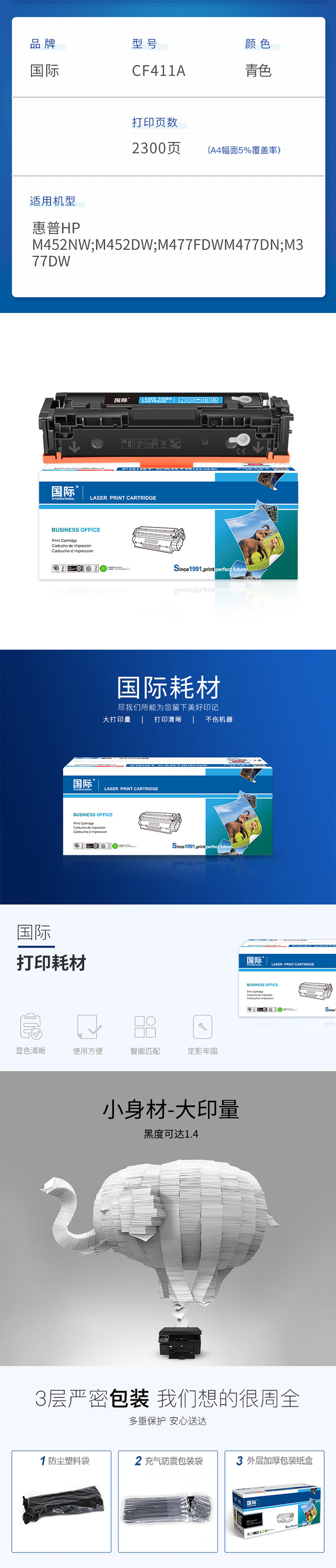 国际 CF411A 2300页 硒鼓 青色(单位:支)
