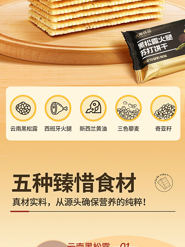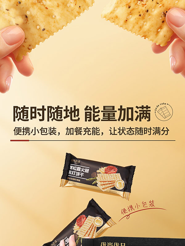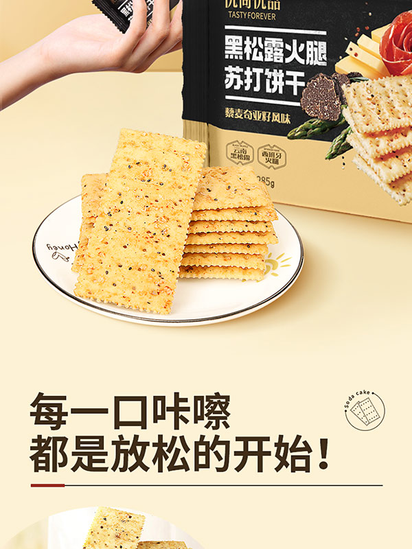 优尚优品 黑松露火腿苏打饼干 500g*2袋 藜麦奇亚籽风味 黑色(单位:袋)