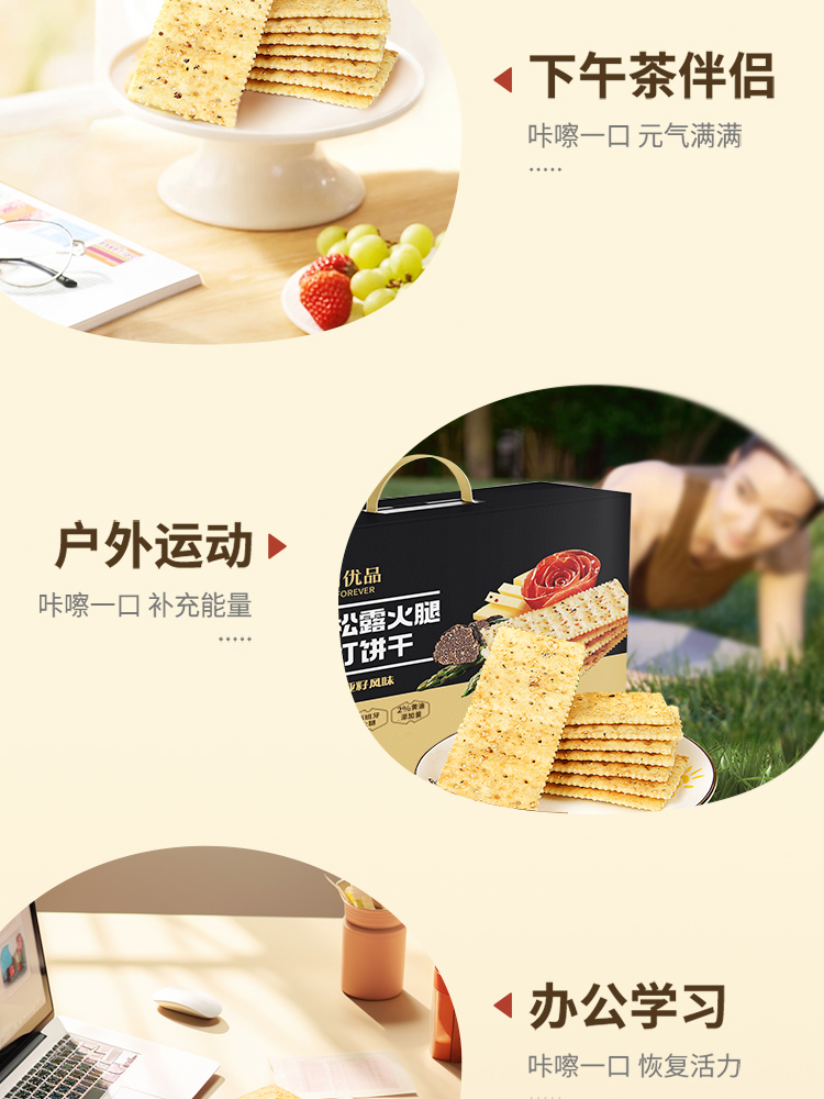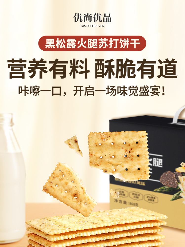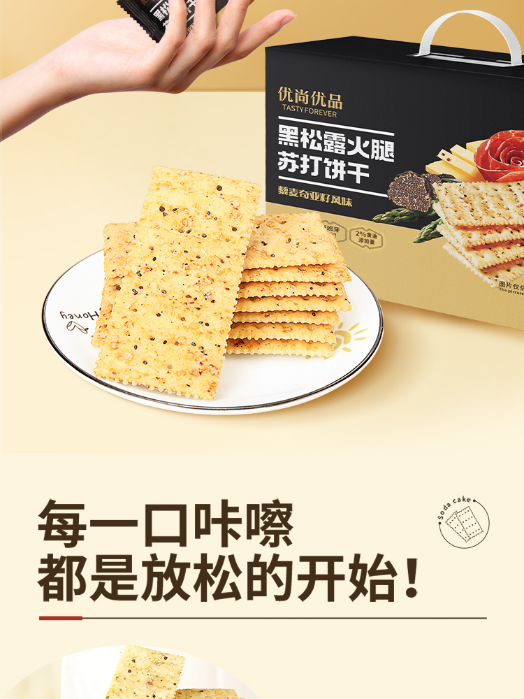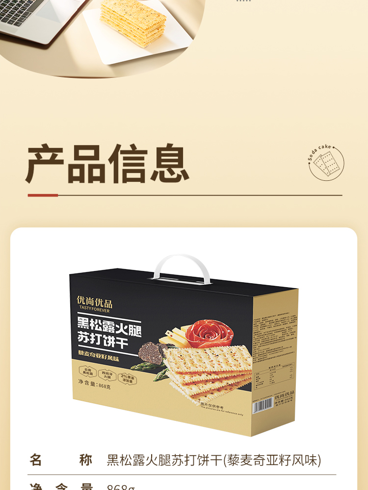 优尚优品 黑松露火腿苏打饼干 )868g 藜麦奇亚籽风味 黑色(单位:盒)